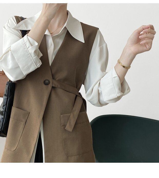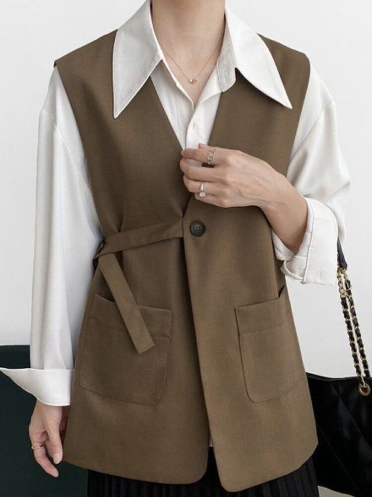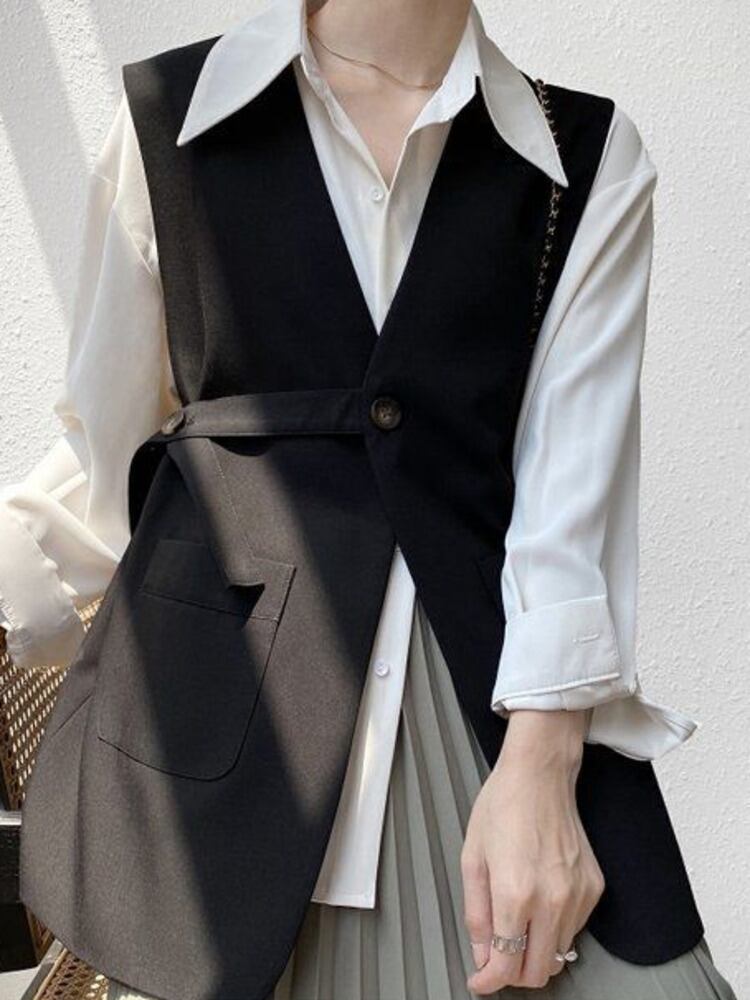 [EWQ] レースアップボタンスーツベストルーズノースリーブジャケットポケット装飾夏潮トップ U1079 サマー 夏物