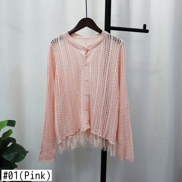 [EWQ] 甘い中空アウト長袖カーディガンコートシングルブレスト V ネック裾テルセータージャケット秋薄手服 ロング 大人ガーリー スウィート キュート カジュアル オータム 秋物 Vネック