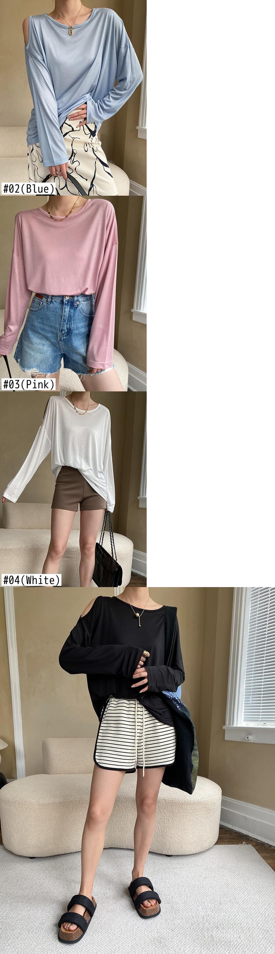 [EWQ] O ネック オフショルダー コットン Tシャツ レディース スプライス 長袖 ピンク トップス 秋 16O2111 ロング オータム 秋物 Oネック