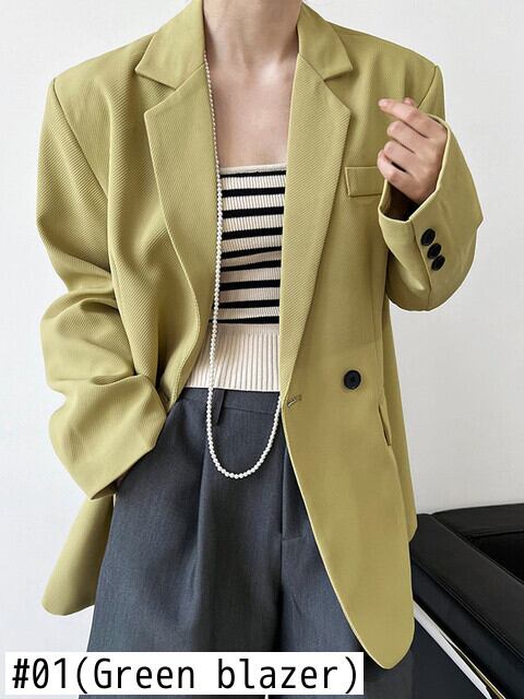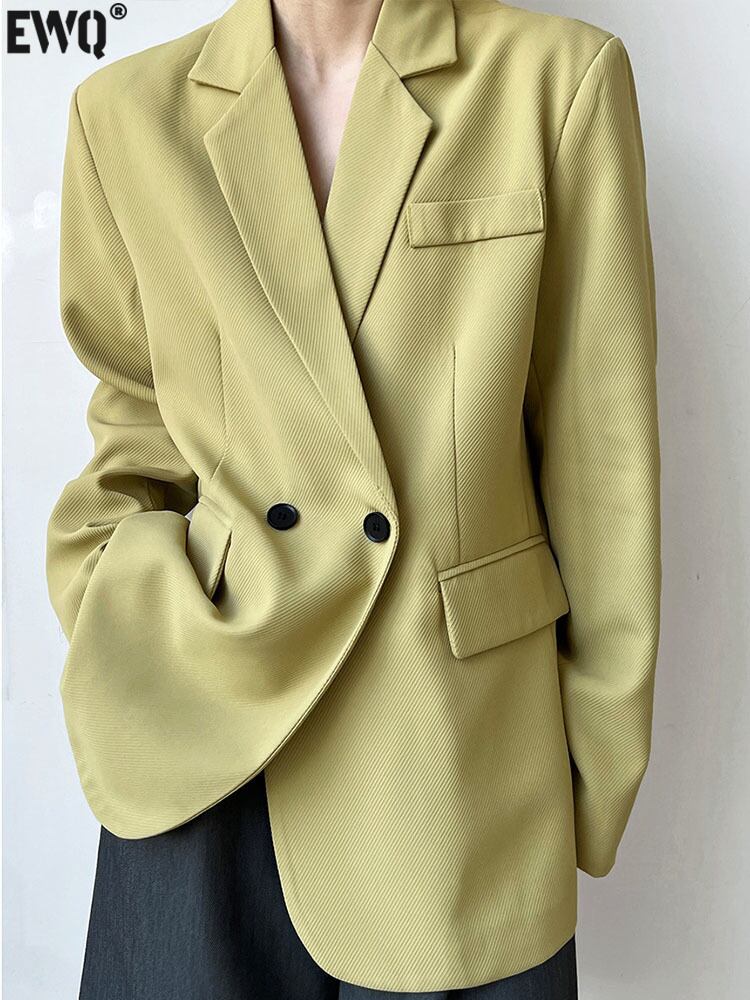 [EWQ] シックでシンプルノッチダブルブレストフルスリーブブレザー夏 OL オフィスレディレジャースーツジャケット サマー 夏物 会社 学校 通勤や通学にも