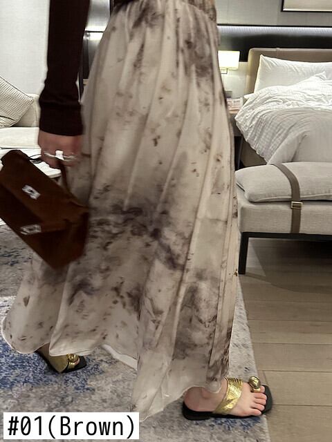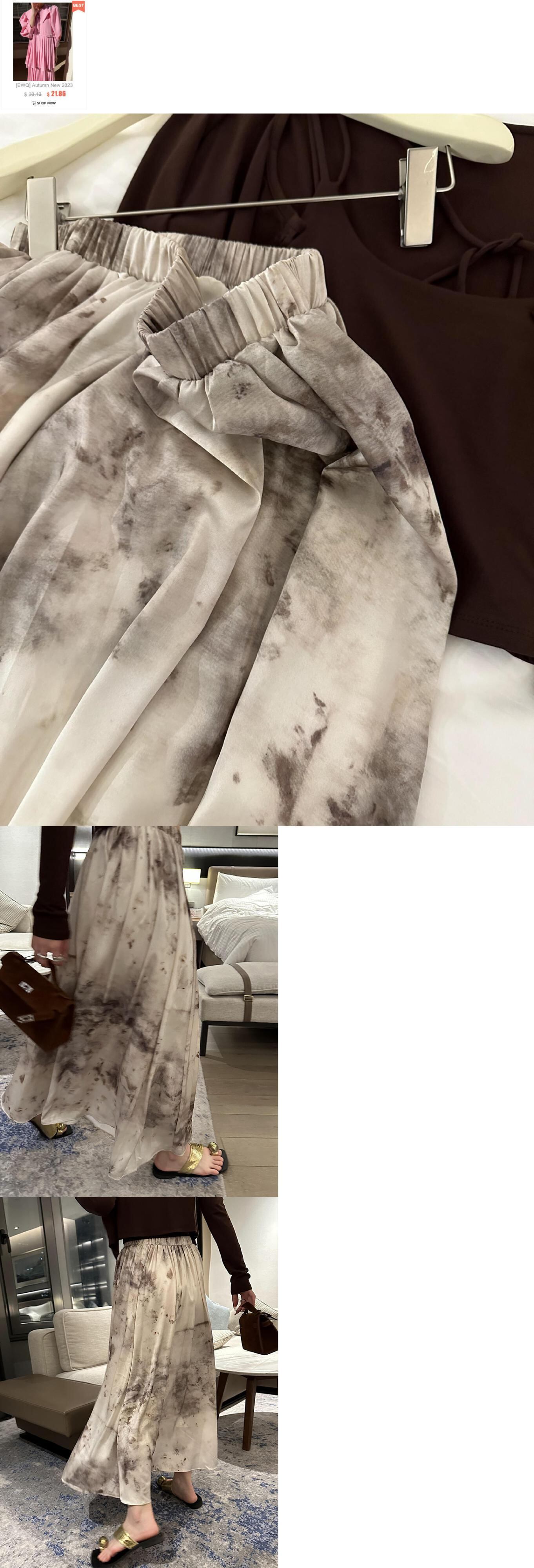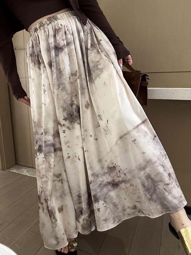 [EWQ] プリントコントラスト A ラインスカートウエスト弾性ミッドカーフスカート夏潮オールマッチ服 エラスティック 伸縮 サマー 夏物 Aライン