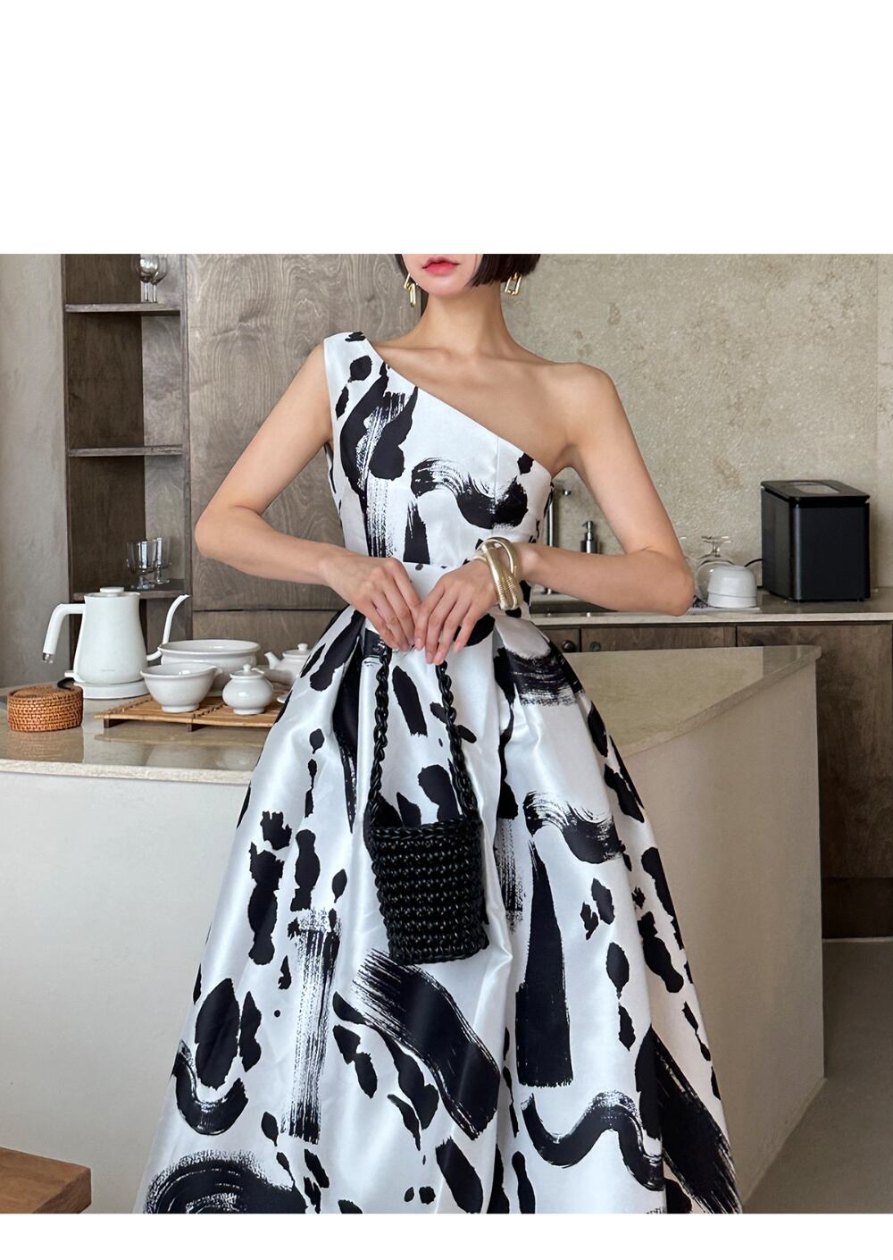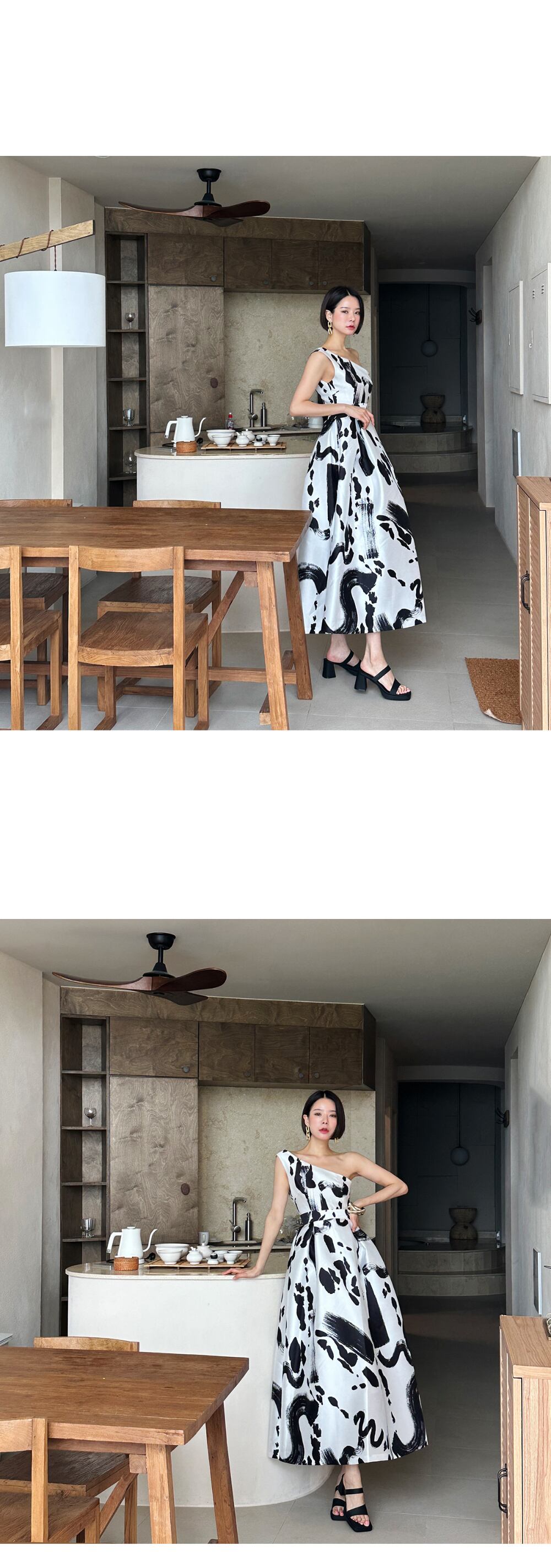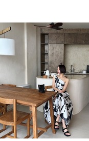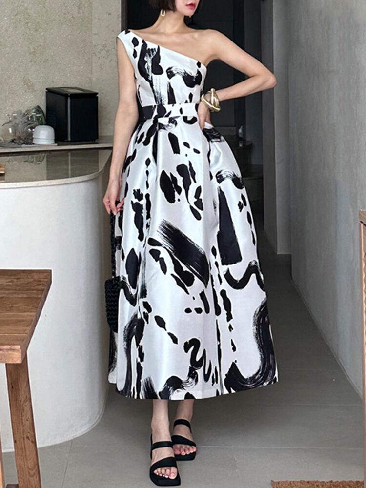 [EWQ] 気質不規則斜め襟ノースリーブドレスプリントドレス夏 Vestido サマー 夏物