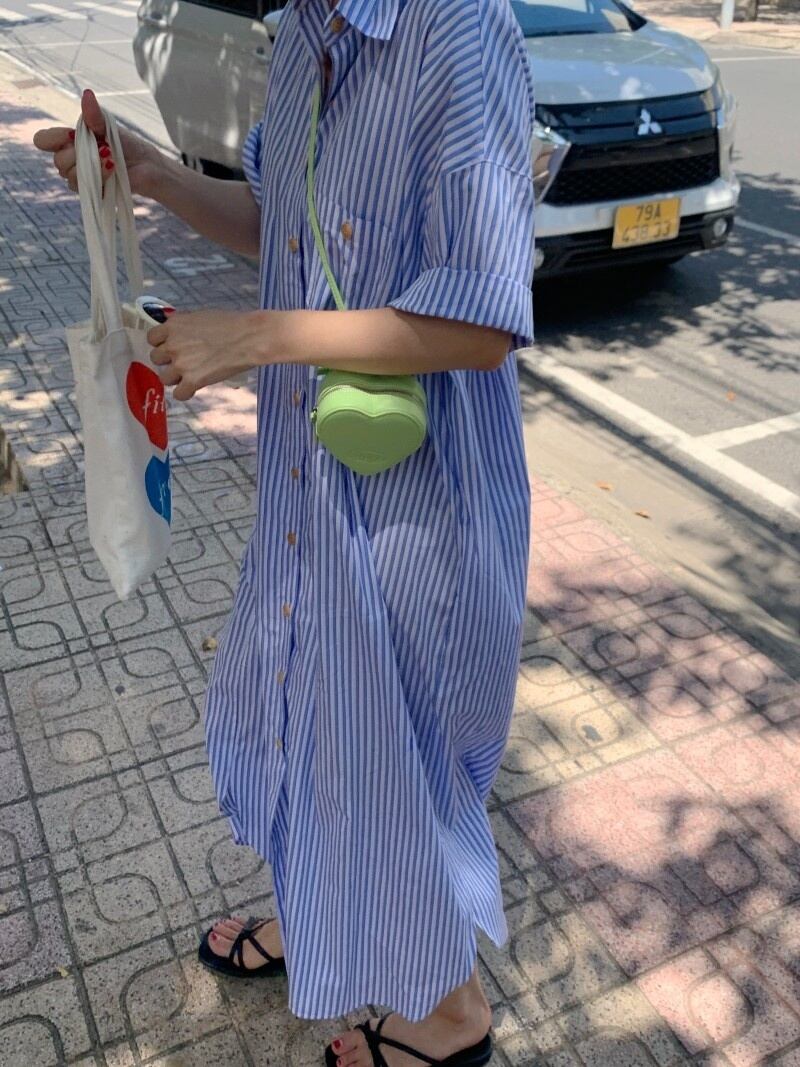 [EWQ] ストライプコントラストカラーラペルシャツドレスレディース半袖シャツドレス夏トレンド ショート ハーフスリーブ サマー 夏物