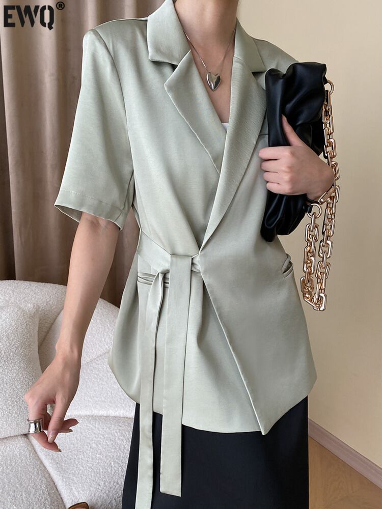 [EWQ] サイド包帯ブレザー半袖薄い夏ラペルスーツジャケット気質ブレザー 16U891 ショート ハーフスリーブ サマー 夏物
