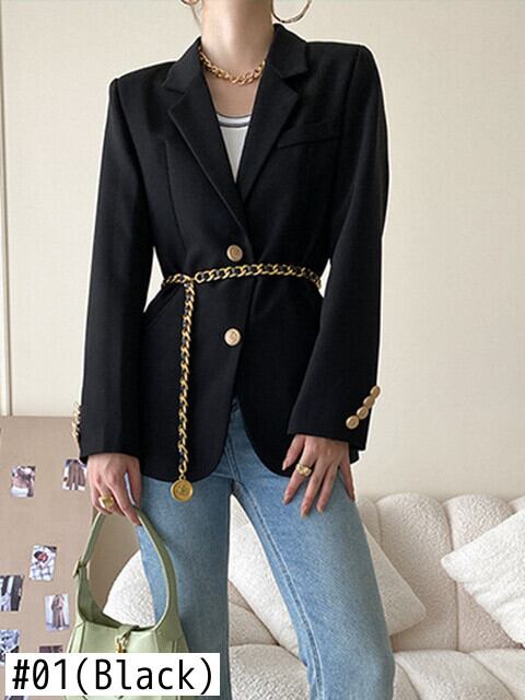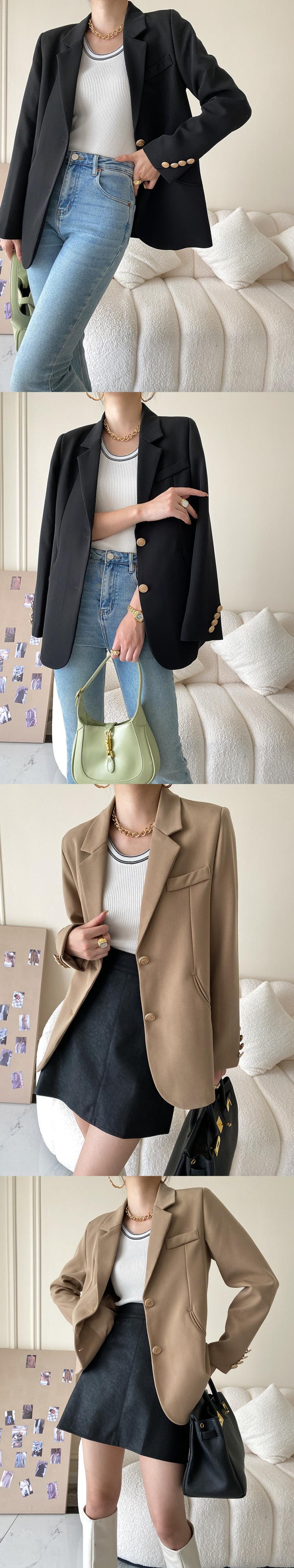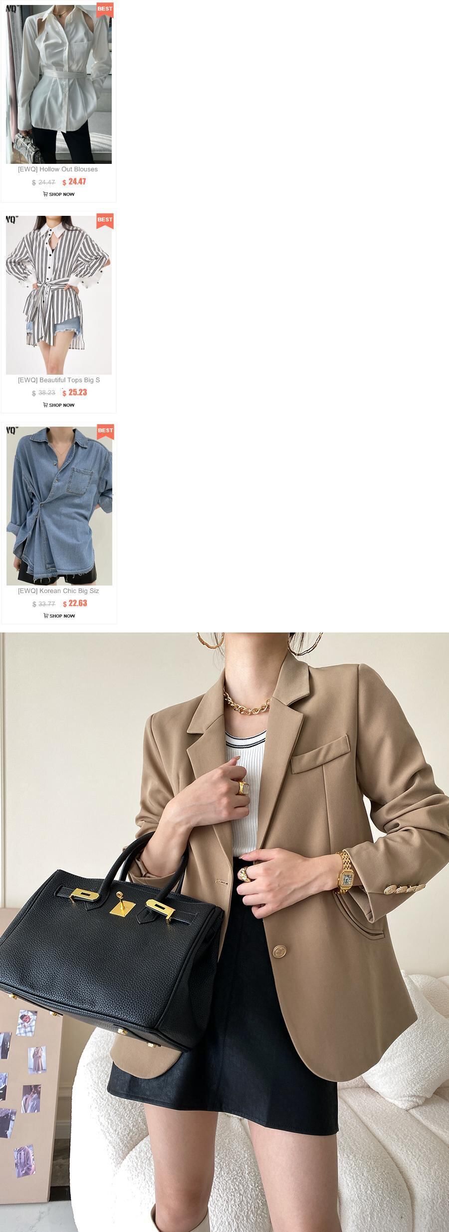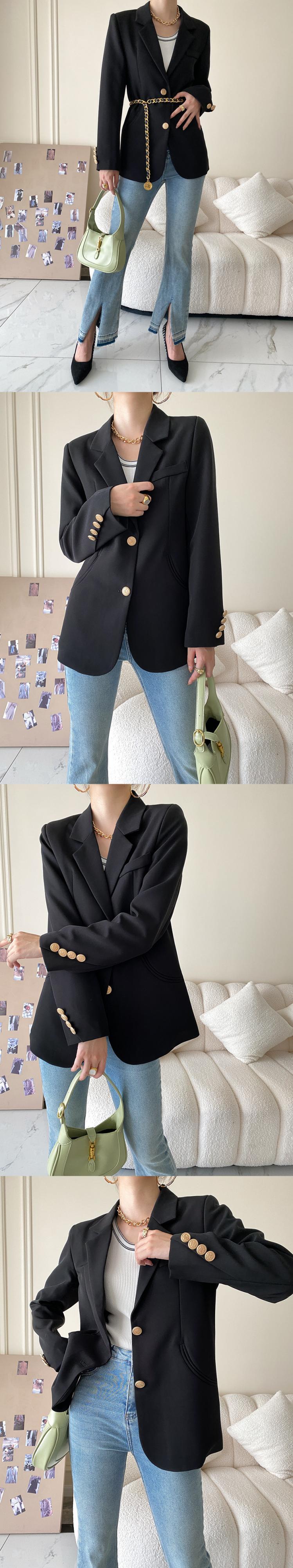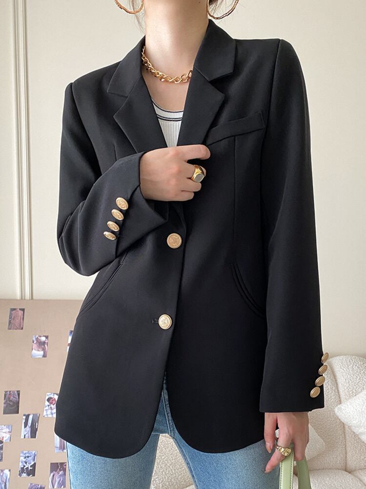 [EWQ] ゴールドボタンブレザーコート肩パッド長袖ルーズスーツジャケット秋潮 Balzers ロング オータム 秋物