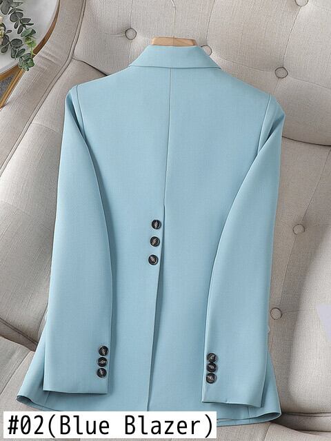 [EWQ] 春秋ブルーブラックピンクコーヒーブレザー長袖美しいルーズコート ロング スプリング 春物 オータム 秋物
