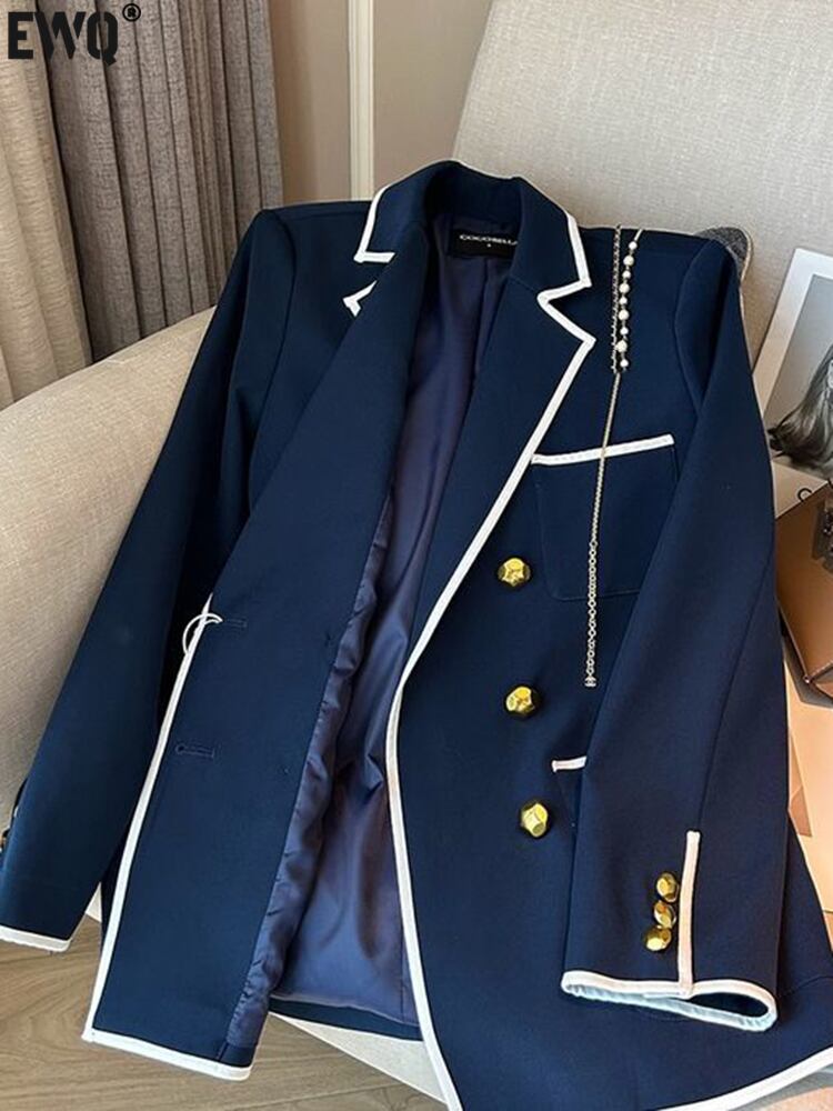 [EWQ] コントラストカラーブレザーコートダブルブレストルーズビッグサイズ長袖スーツジャケット秋潮 73 ロング オータム 秋物