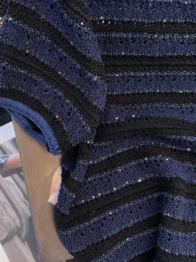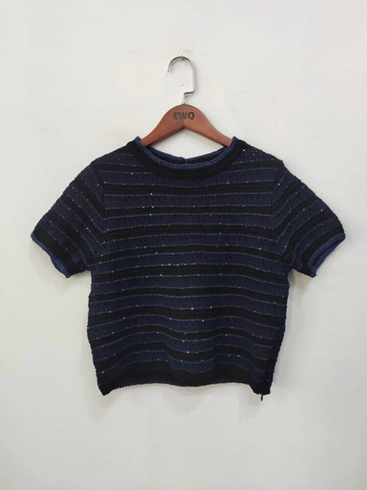 [EWQ] O ネック ストライプ ニット Tシャツ レディース 半袖 薄手 Tシャツ 夏トレンド 16U1256 ショート ハーフスリーブ サマー 夏物 Oネック
