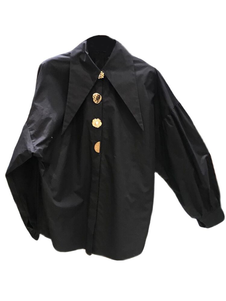[EWQ] シックボタンシャツランタンスリーブルーズシングルブレストラペル秋潮トップス 16U978 オータム 秋物