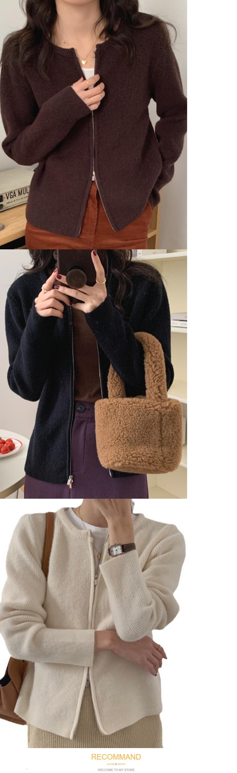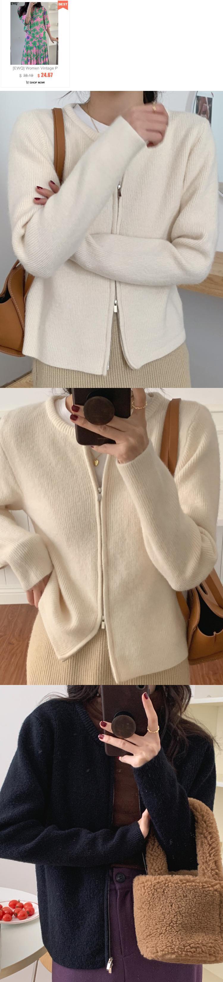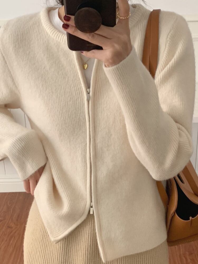 [EWQ] ミニマリストダブルジップアップカーディガンコート長袖ルーズソリッドセータージャケット秋潮薄手服 ロング オータム 秋物 ソリッドカラー