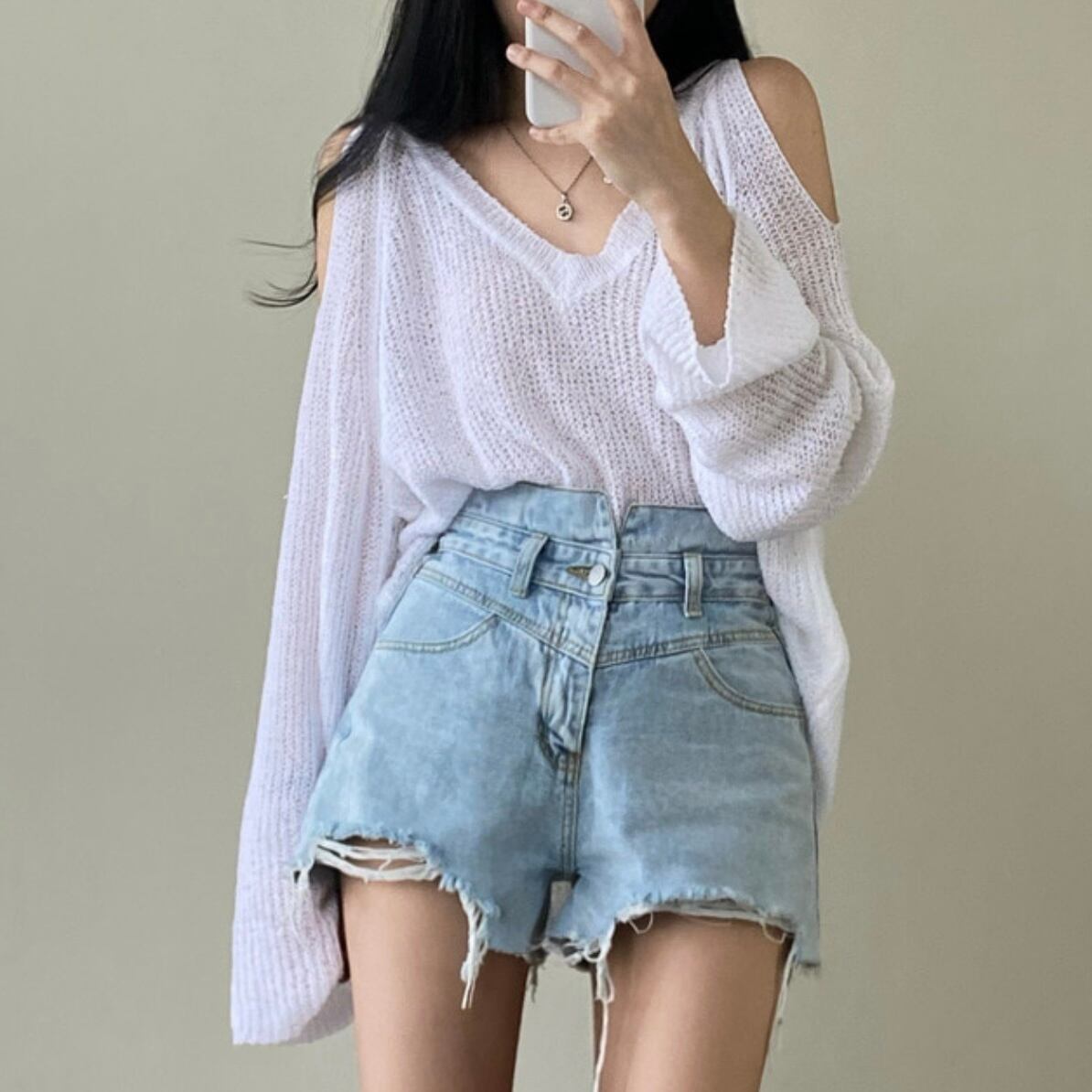 [EWQ] 長袖中空アウトセクシーセーター薄い視点 V ネックルーズ秋潮プルオーバーニットトップ ロング オータム 秋物 Vネック
