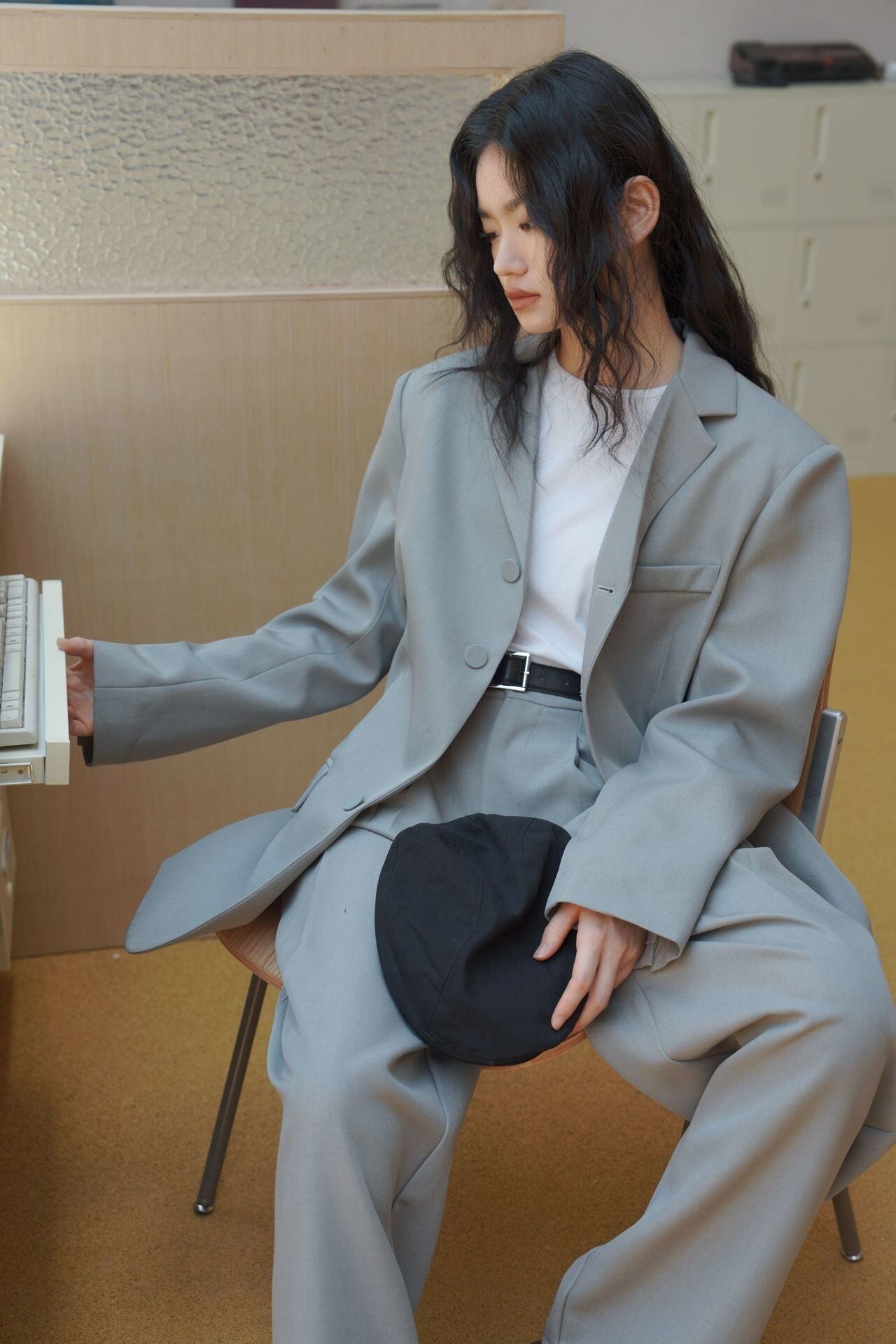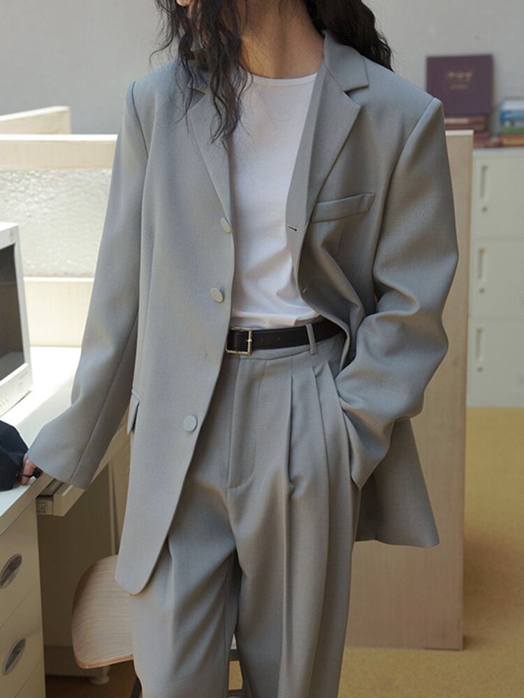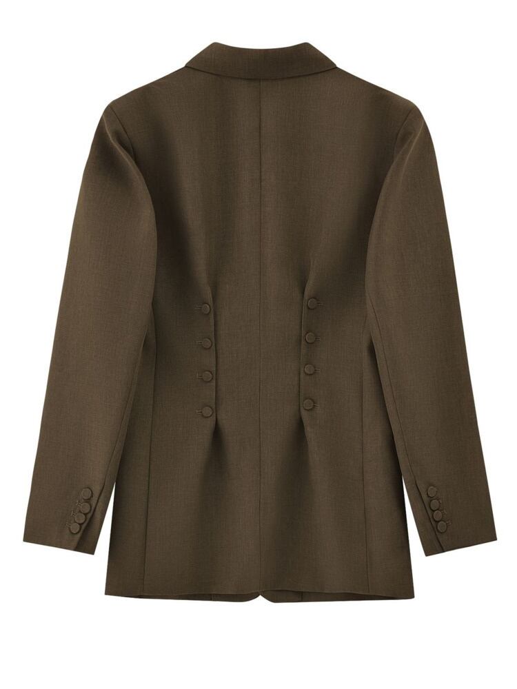 [EWQ] バック分割ボタン装飾ブレザーコート長袖ルーズスーツジャケット秋ブレザー 6U1335 ロング オータム 秋物