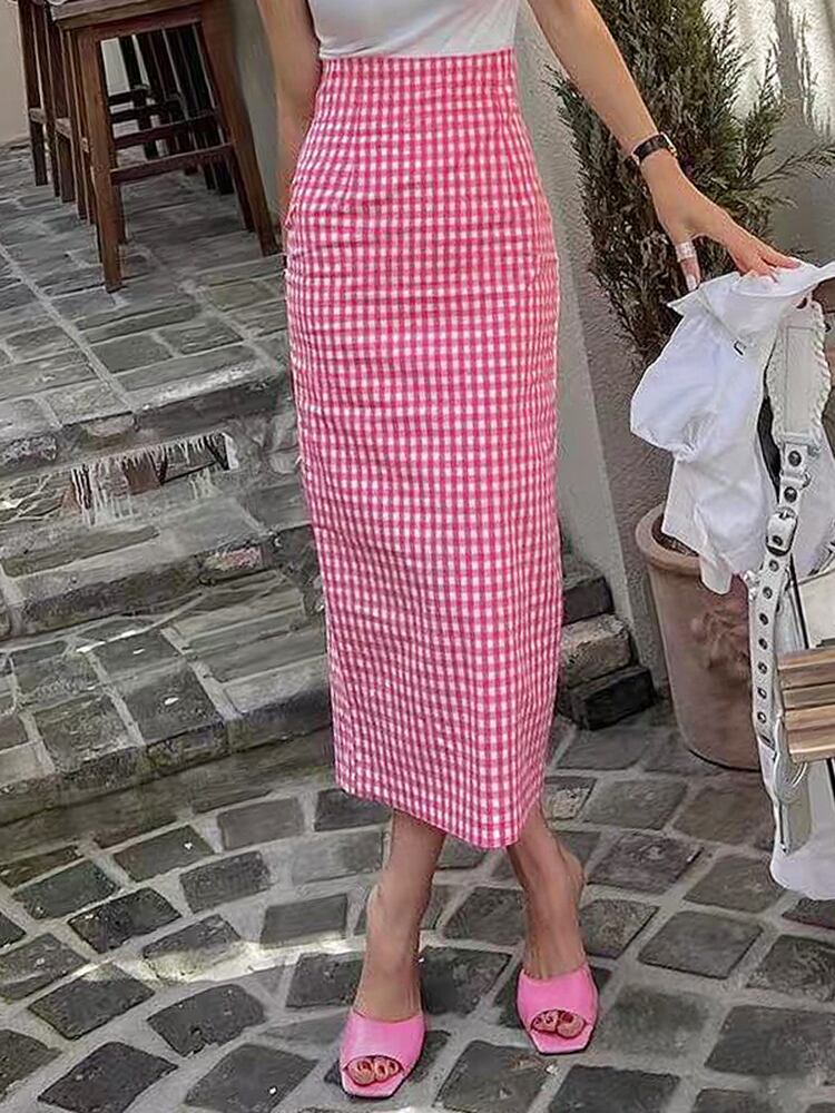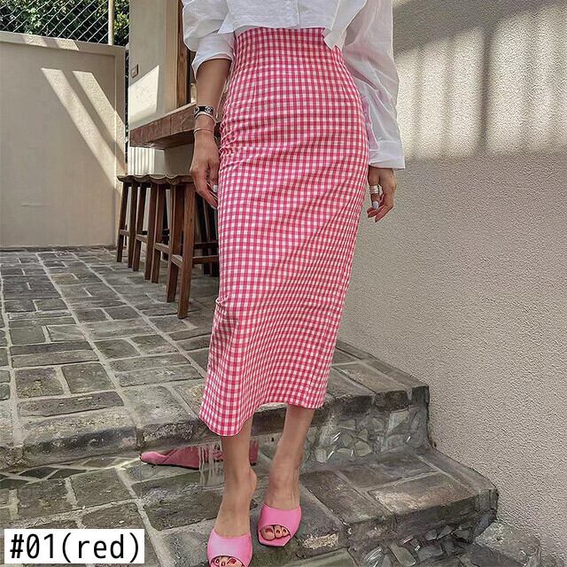 [EWQ] シックチェック柄コントラストカラースカートオフィスレディワーシットスプリットスカート夏トレンド サマー 夏物 会社 学校 通勤や通学にも