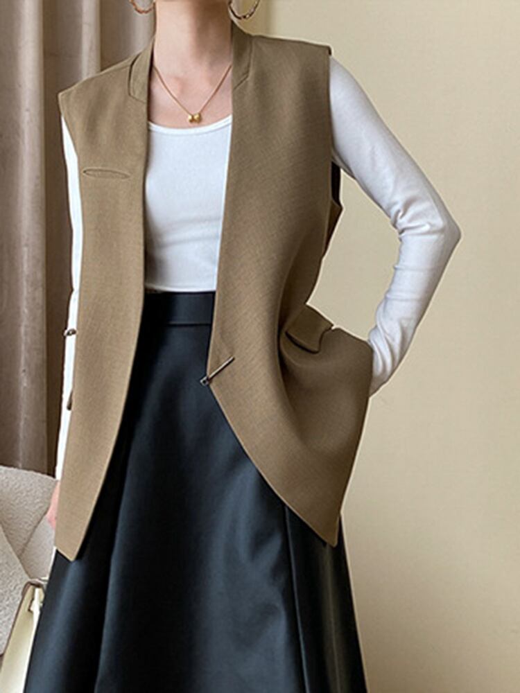 [EWQ] 1 つボタンルーズベスト V ネックノースリーブジャケット夏潮パッチワーク無地トップ 248 サマー 夏物 Vネック ソリッドカラー