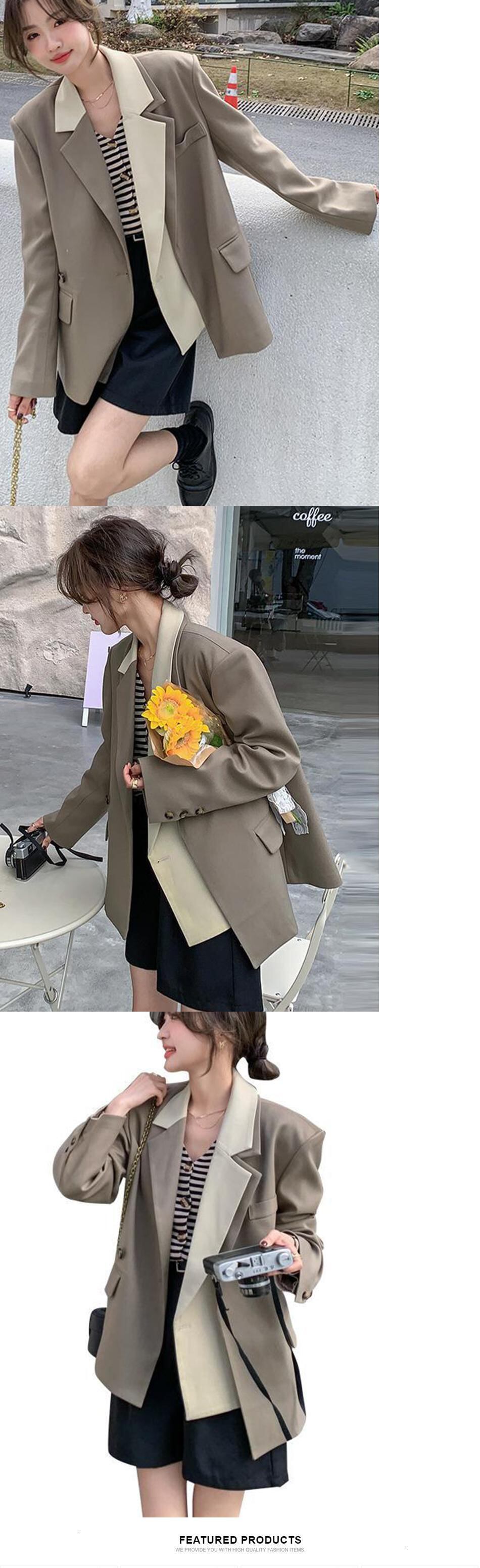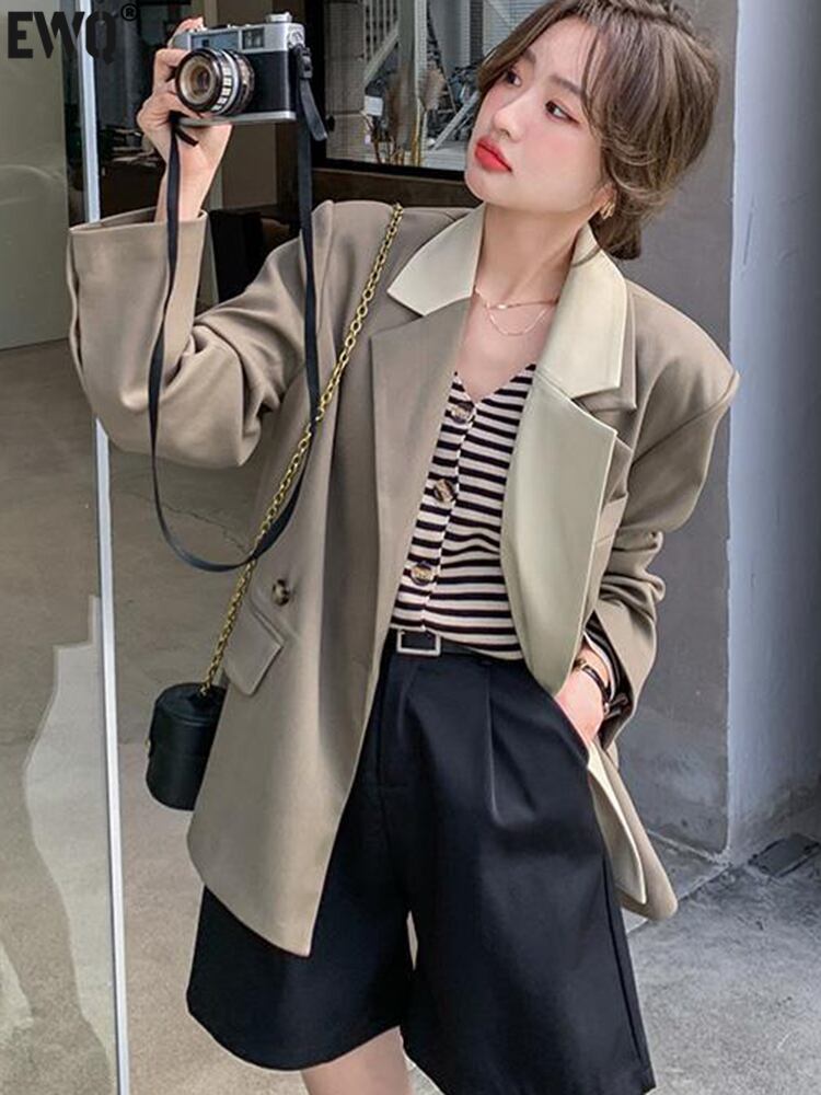 [EWQ] パッチワーク 1 ボタン ブレザー コート長袖ルーズノッチ スーツ ジャケット秋潮ブレザー 6U1081 ロング オータム 秋物