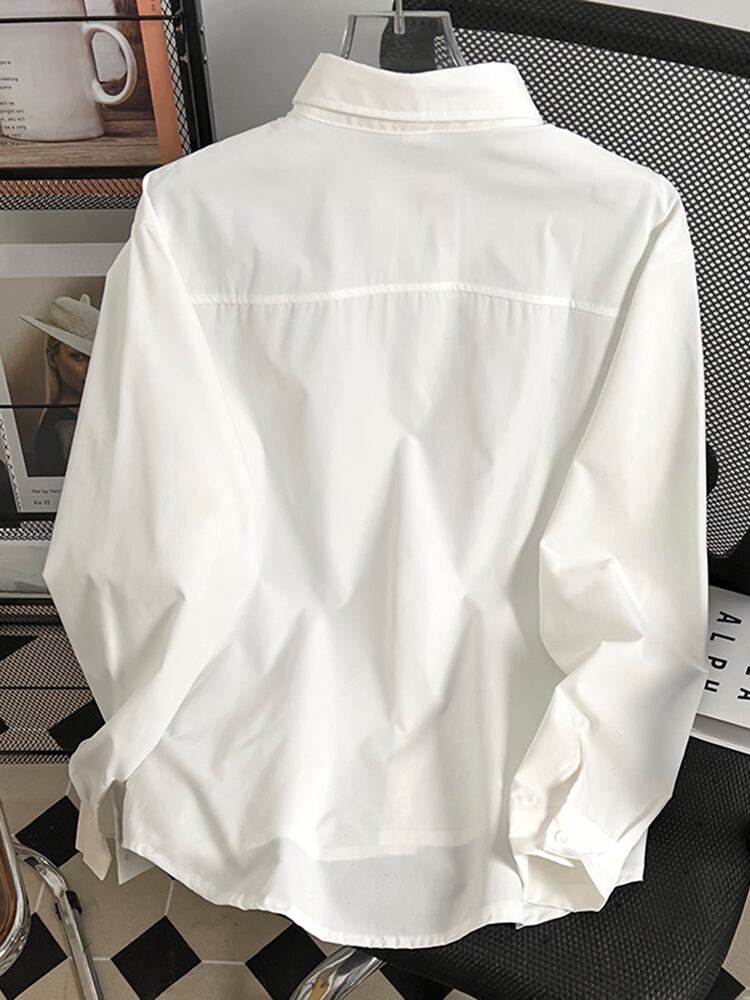 [EWQ] シックデニムパッチワークラペルシャツレディース長袖ブラウス秋潮スプライシングトップス ロング オータム 秋物