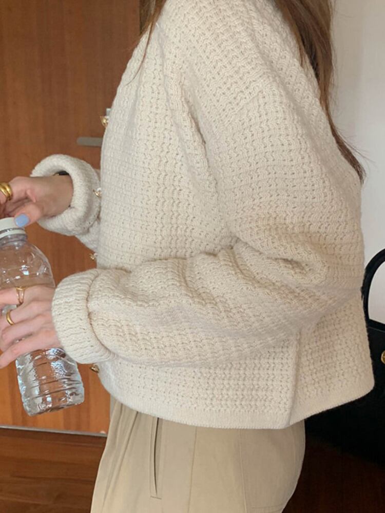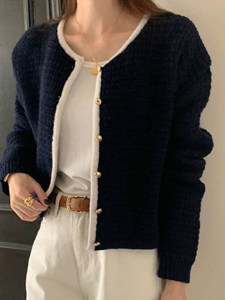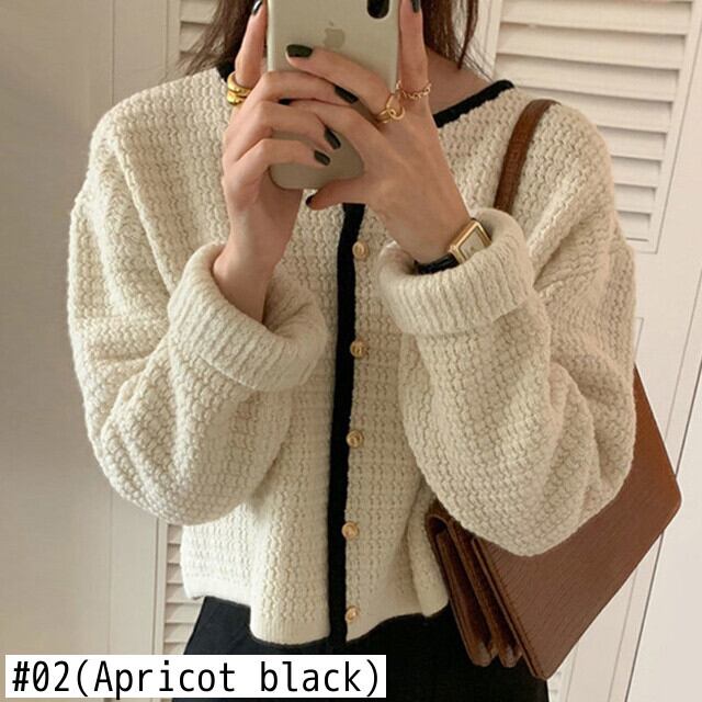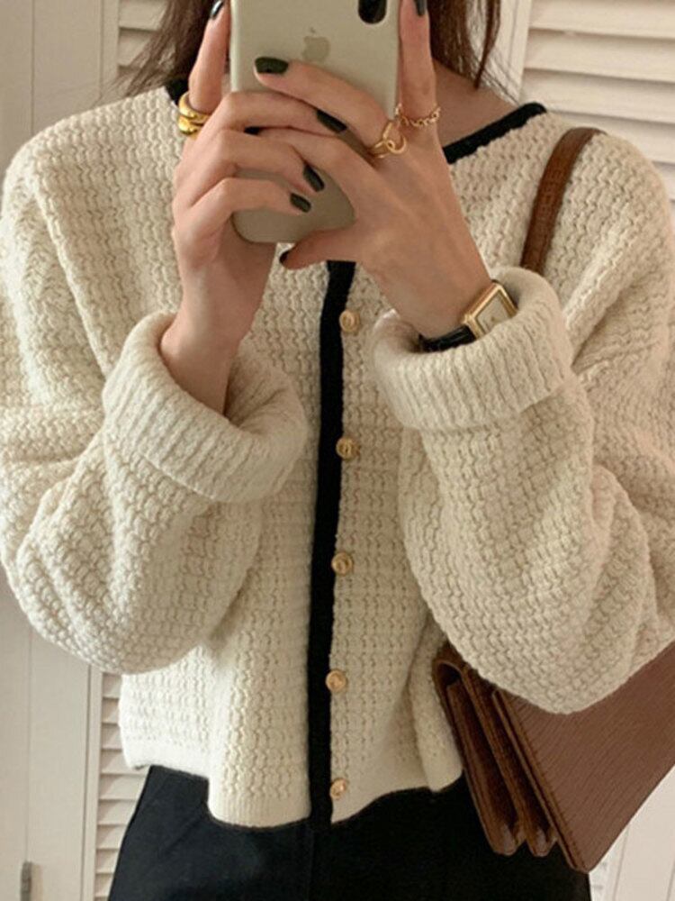 [EWQ] O ネックコントラストカーディガンコート長袖ルーズシングルブレストセータージャケット秋潮 2179 ロング オータム 秋物 Oネック