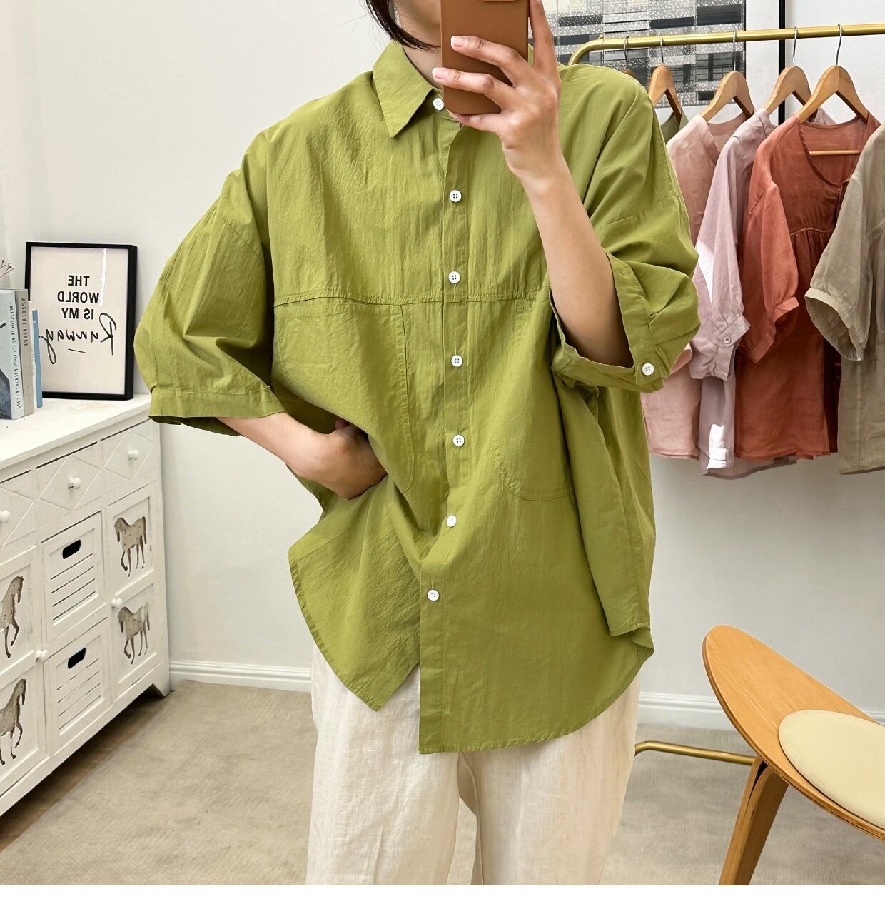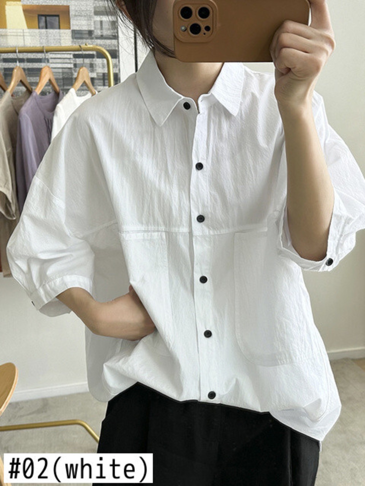 [EWQ] バットウィングスリーブルーズシャツ裾非対称シングルブレストブラウス秋潮トップ 16U1167 オータム 秋物