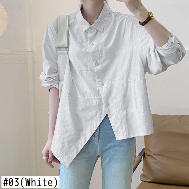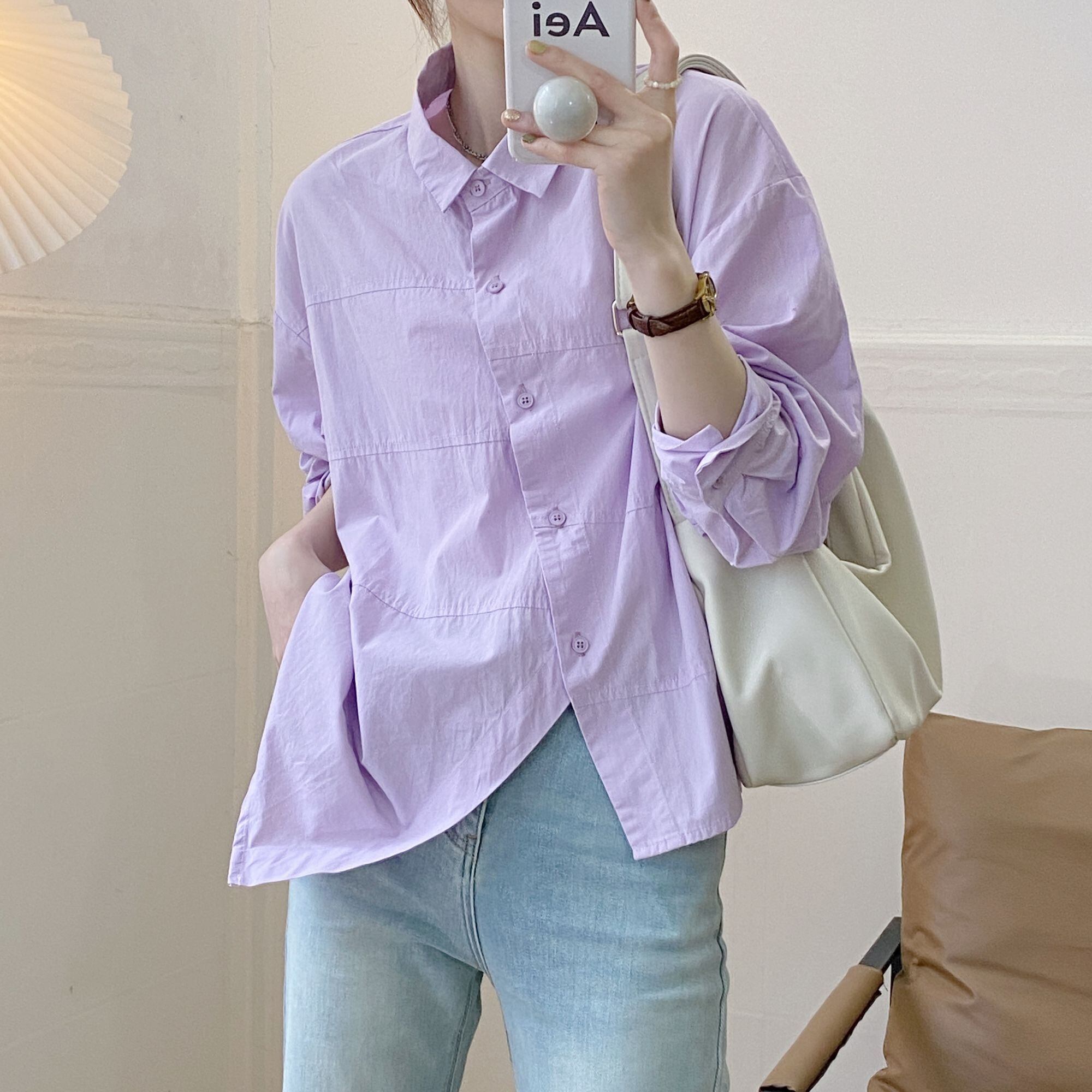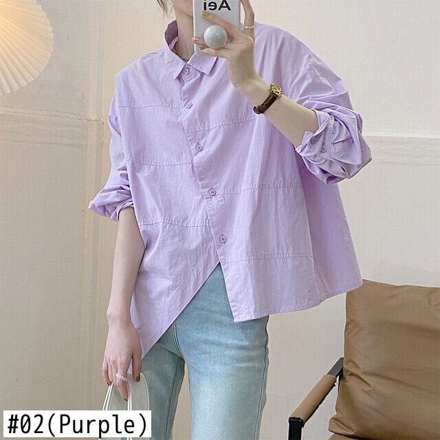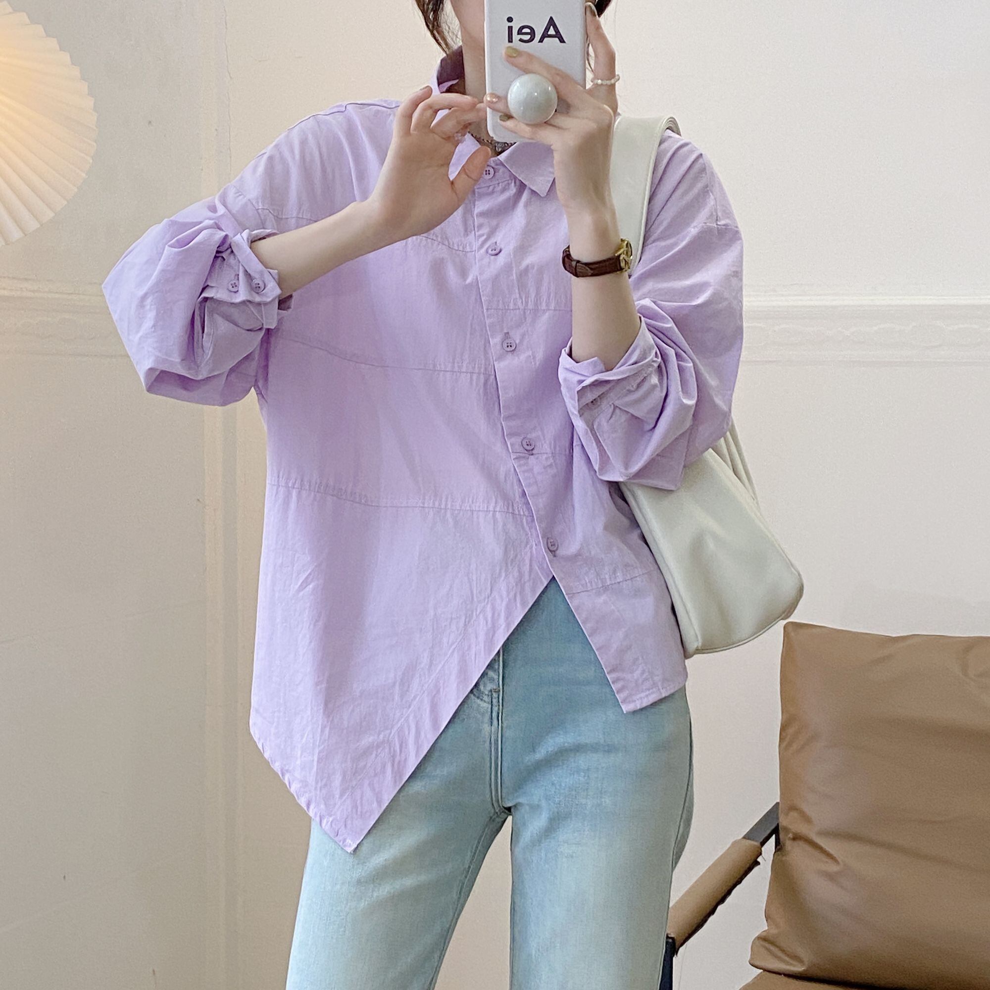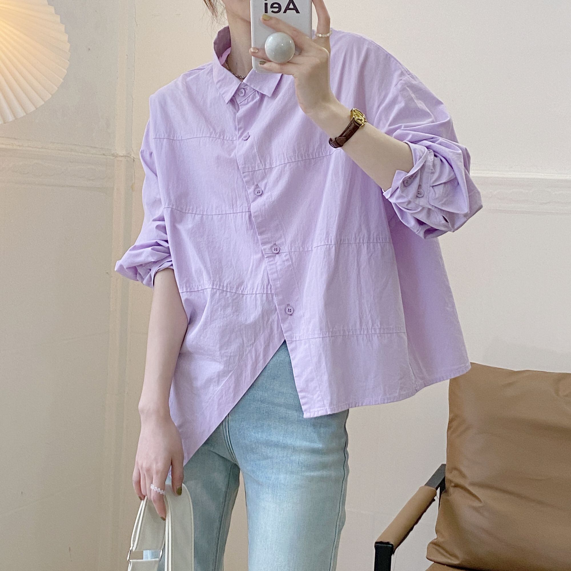 [EWQ] 不規則シングルブレスト紫シャツビッグサイズ長袖秋潮ルーズトップ 16U1160 ロング オータム 秋物 パープル