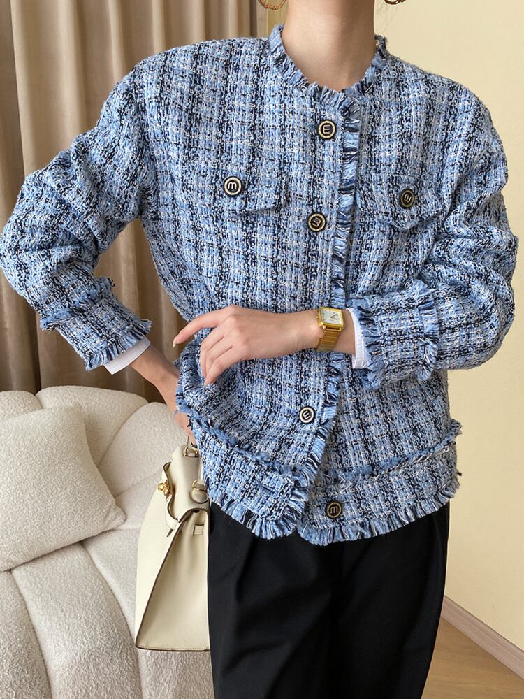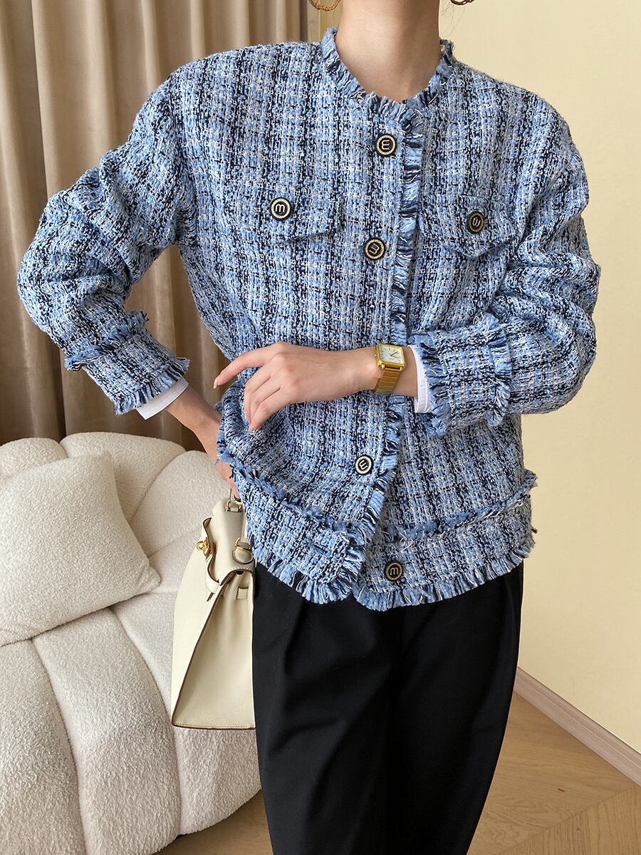 [EWQ] 織ツイードジャケット秋潮長袖シングルブレストテルパッチワークジャケットコートコート 2232 ロング オータム 秋物