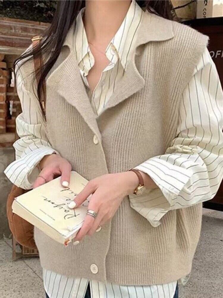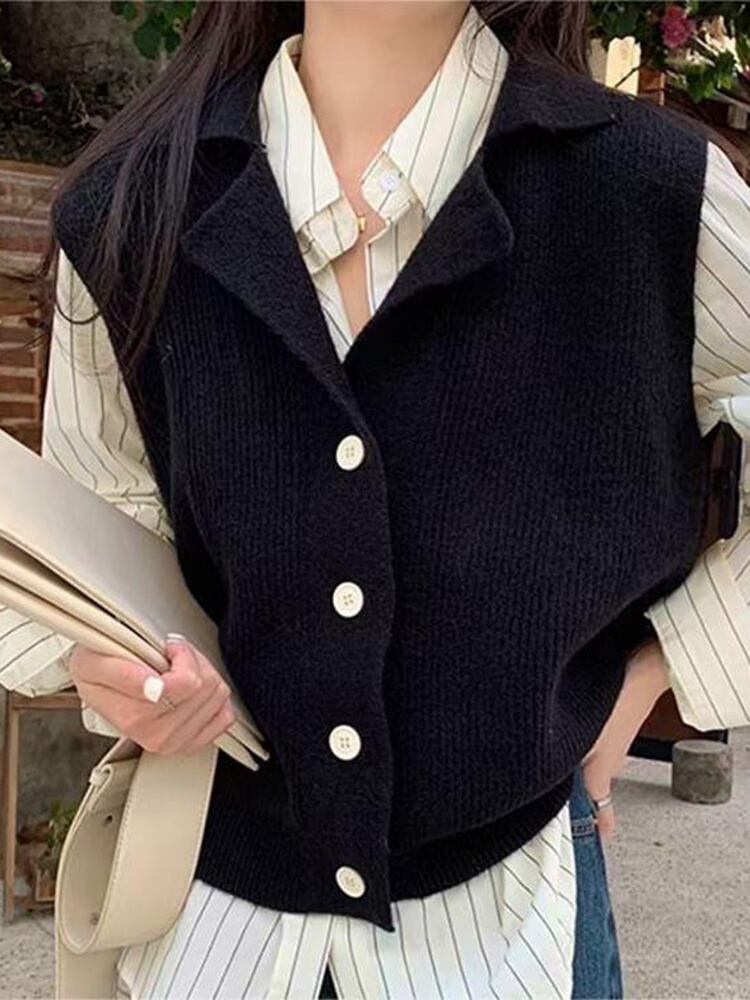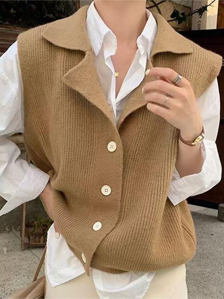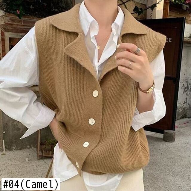 [EWQ] シングルブレストニットベストルーズノースリーブラペルセータータンクトップ秋潮チョッキ 187 オータム 秋物
