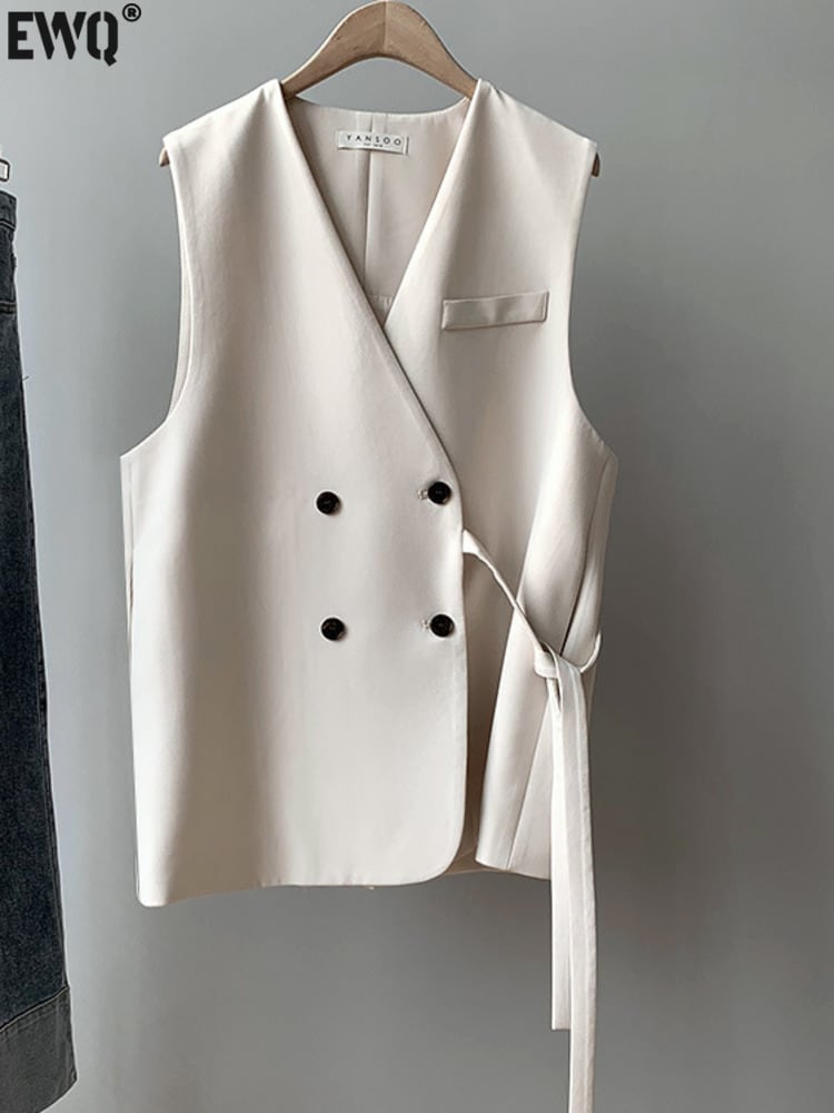 [EWQ] スーツベスト夏潮ルーズ V ネック包帯ダブルブレストノースリーブジャケットトップ 9405 サマー 夏物 Vネック