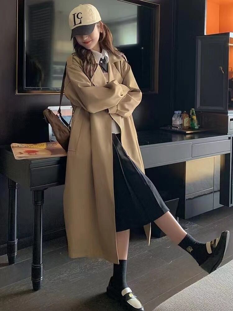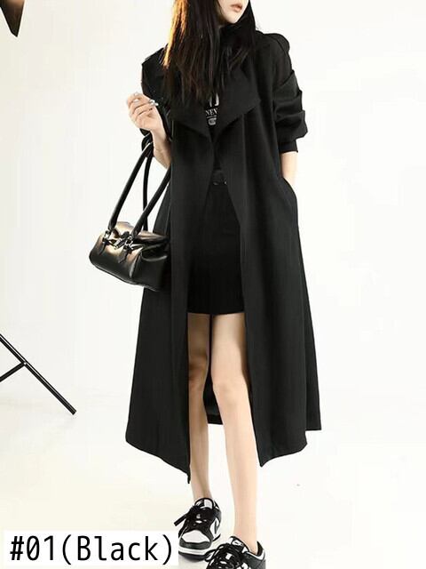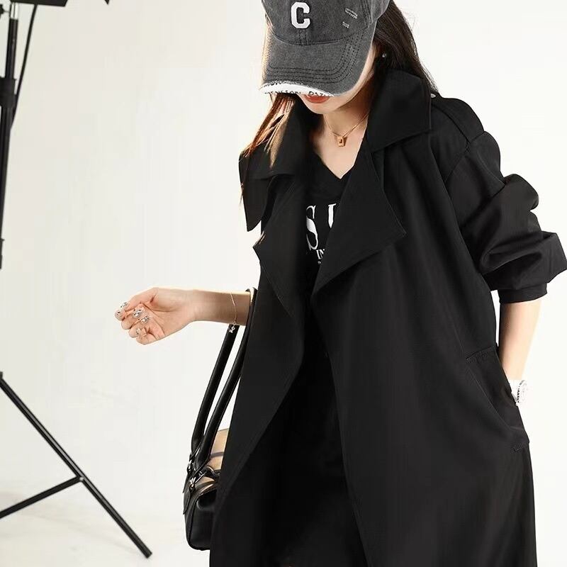[EWQ] ラペルバックルレースアップ装飾ウインドブレーカーコート長袖ルーズ包帯トレンチジャケット秋潮 85 ロング オータム 秋物
