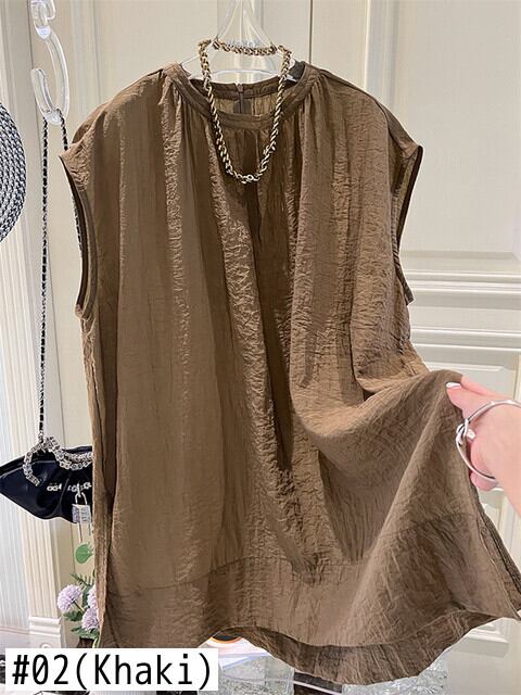 [EWQ] Casua シンプル無地 O ネックオーバーサイズベストルーズノースリーブトップス夏トレンド 16O142 サマー 夏物 Oネック ソリッドカラー