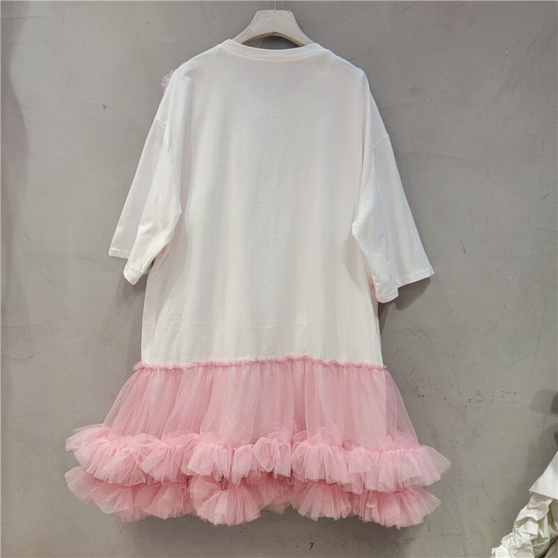 [EWQ] メッシュスプライスカラフルダイヤモンド Tシャツ半袖ルーズストリート O ネックドレス夏 Tシャツ 6U839 ショート ハーフスリーブ サマー 夏物 Oネック