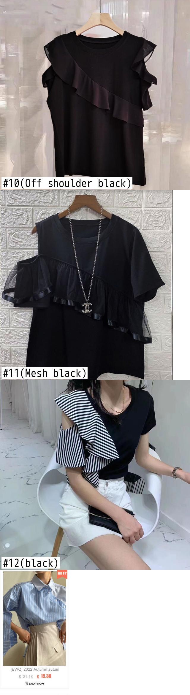 [EWQ] 非対称フリルパッチワーク Tシャツルーズ半袖中空アウト O ネック Tシャツトップ夏潮 ショート ハーフスリーブ サマー 夏物 Oネック