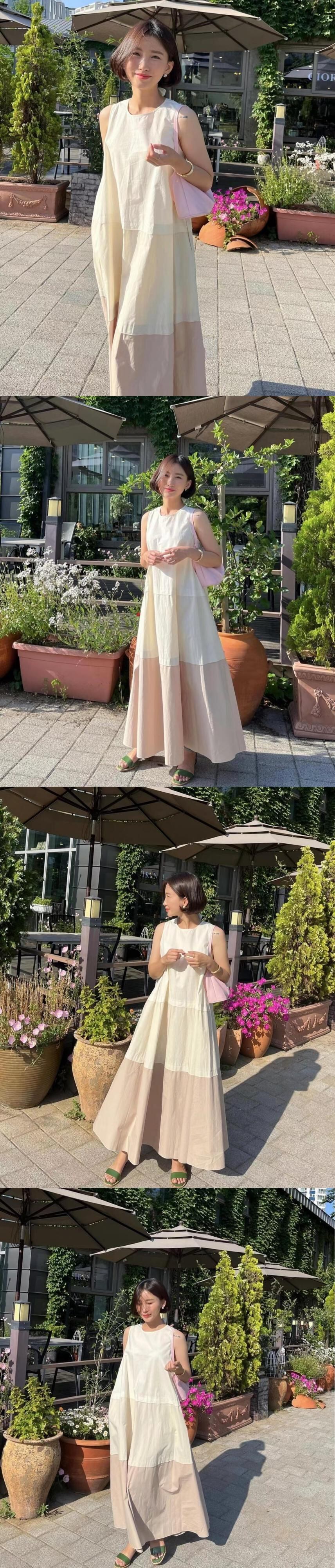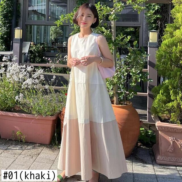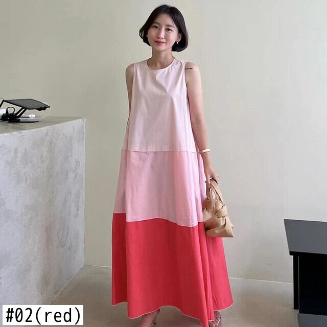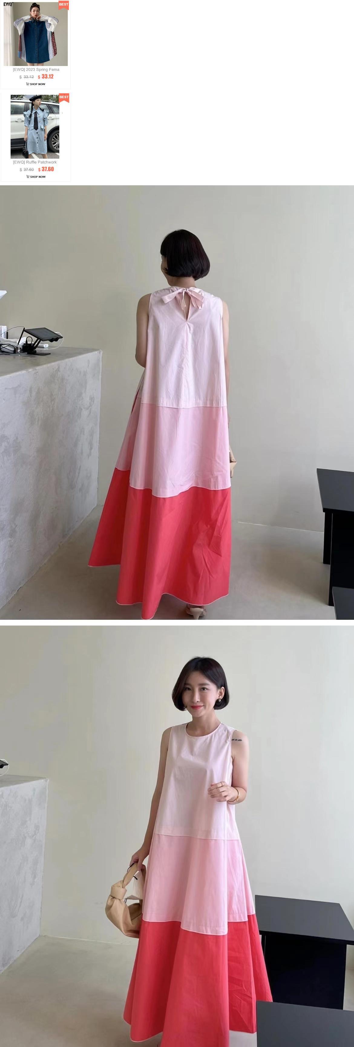 [EWQ] ルーズコントラストカラーバックレースアップドレスノースリーブパッチワークベストドレスサマータイドローブ Y7564 夏物