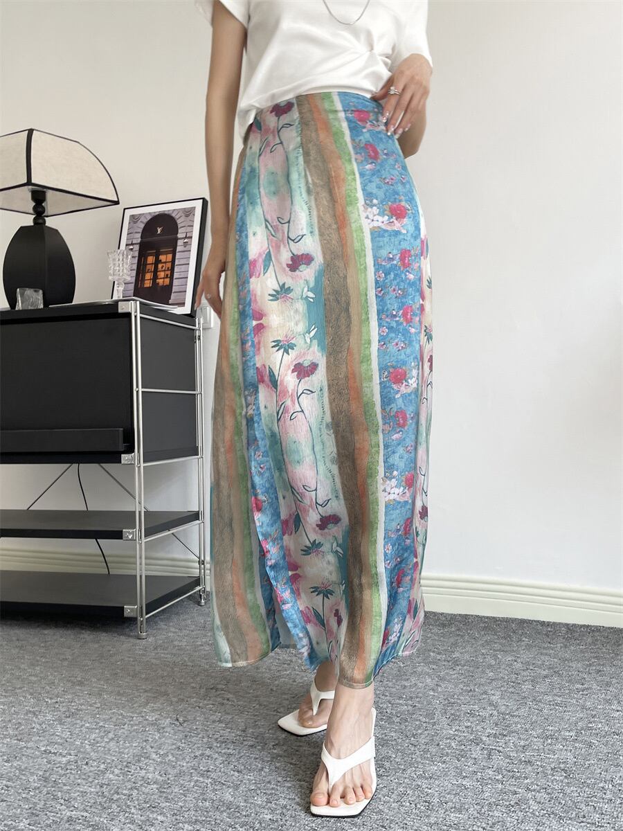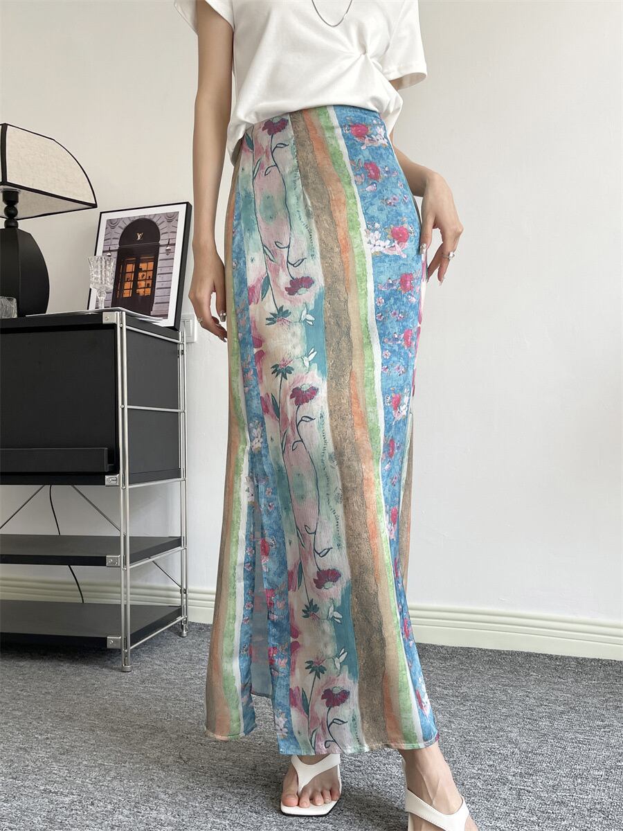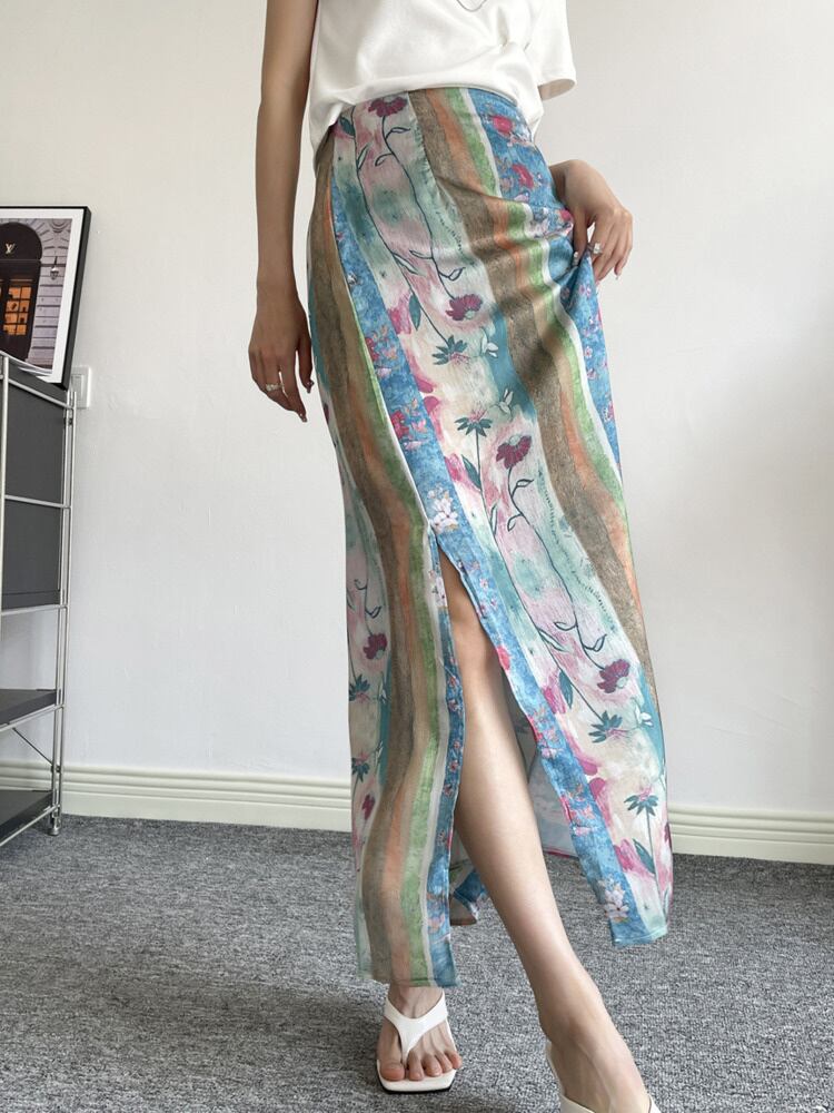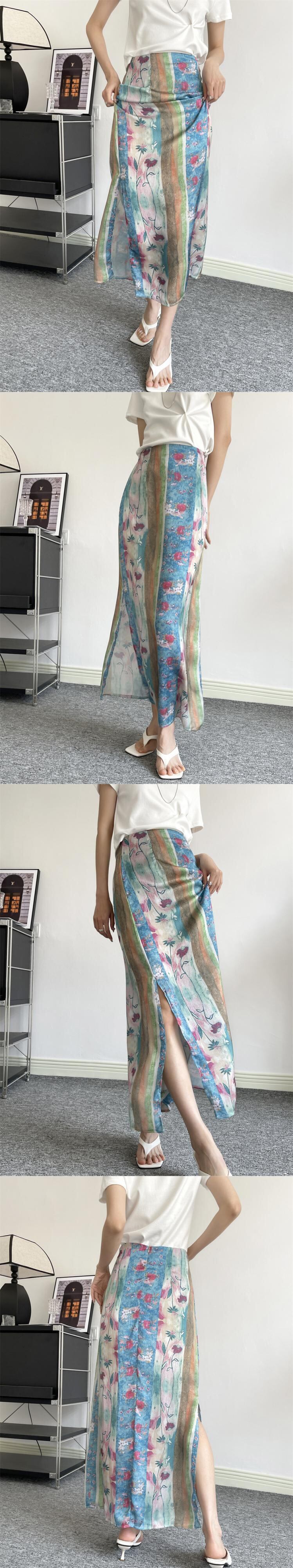 [EWQ] 花柄サイドスプリットスカート レディース プリントスカート 夏潮オールマッチ 6O148 サマー 夏物