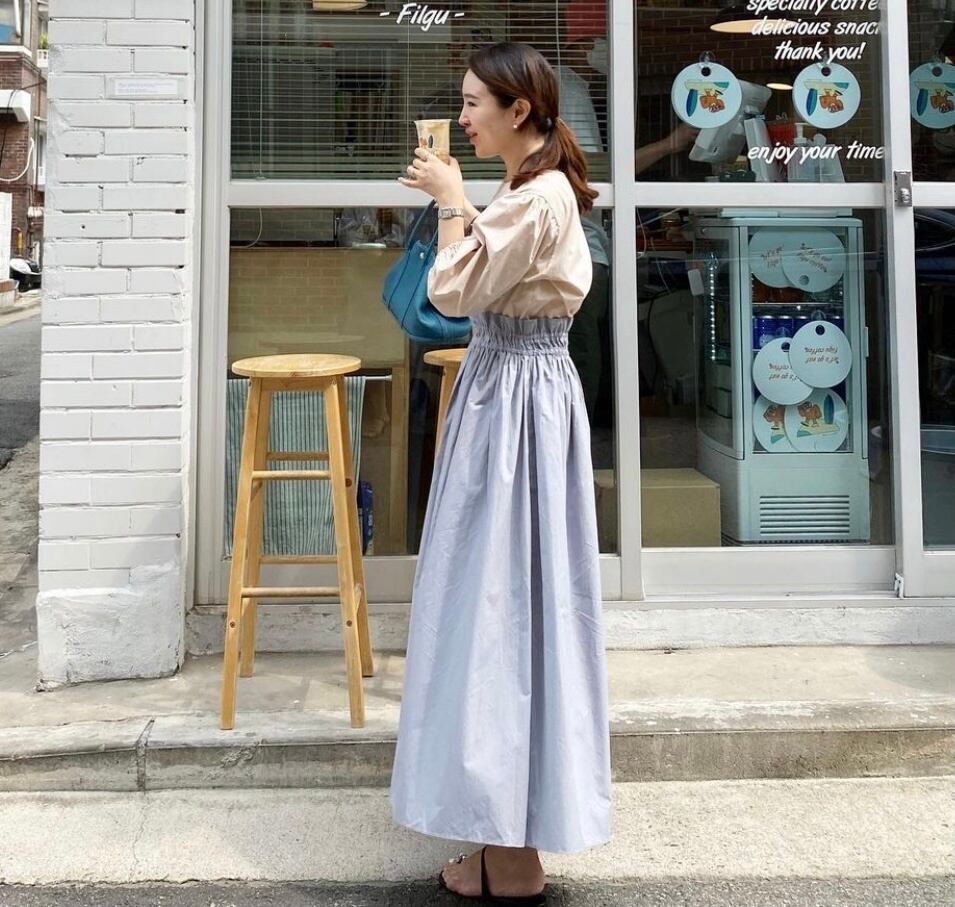 [EWQ] パッチワークプリーツウエストドレスランタンスリーブ O ネックコントラストドレス秋潮 Vestido オータム 秋物 Oネック