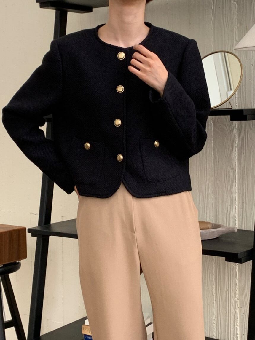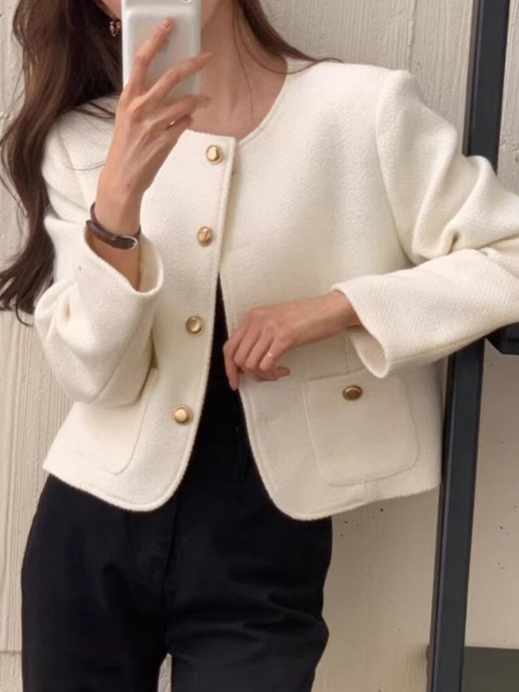 [EWQ] 秋 O ネック長袖ルーズジャケットメタルシングルブレストコートトップオールマッチ ロング オータム 秋物 Oネック
