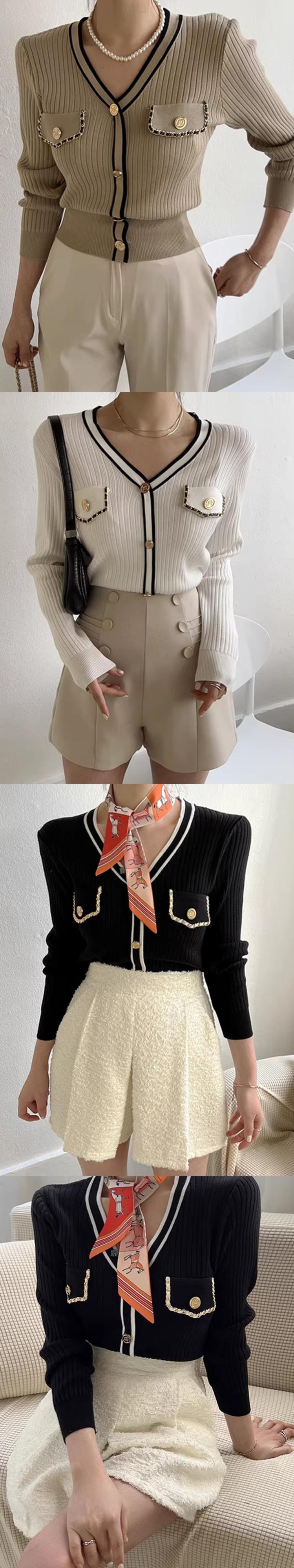 [EWQ] ストライプシングルブレストカーディガンコート秋冬薄手服潮長袖パッチワークセータージャケット ロング オータム 秋物 ウィンター 冬物