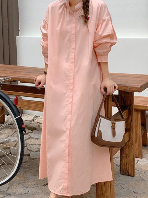 [EWQ] シンプルシングルブレストシャツドレス長袖ルーズ丈ドレス秋潮 Vestido ロング オータム 秋物
