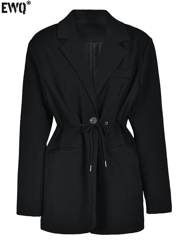 [EWQ] 巾着ジャケット長袖ルーズノッチシングルボタンジャケットコート秋潮生き抜く服 ロング オータム 秋物