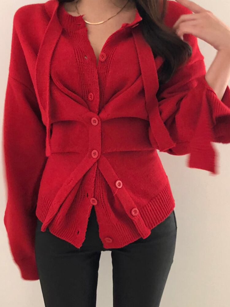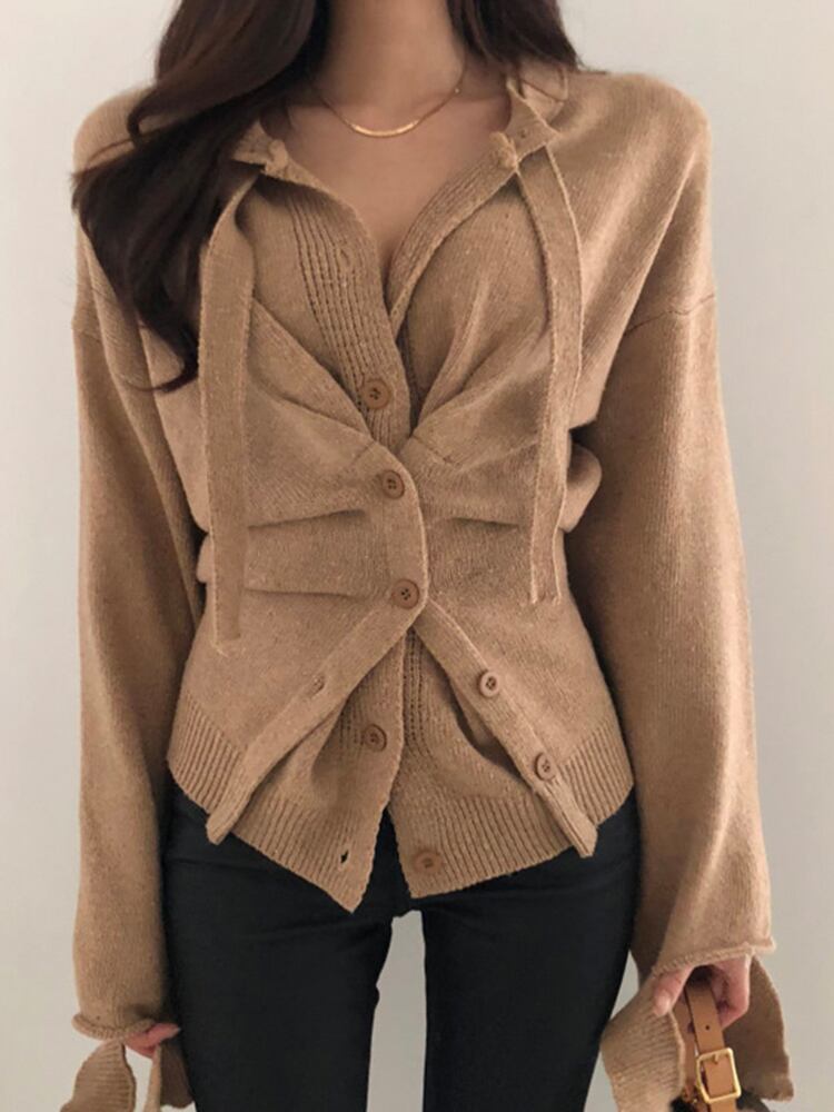 [EWQ] シングルブレスト不規則カーディガンコート長袖レースアップセータージャケット秋潮 Kint コート ロング オータム 秋物