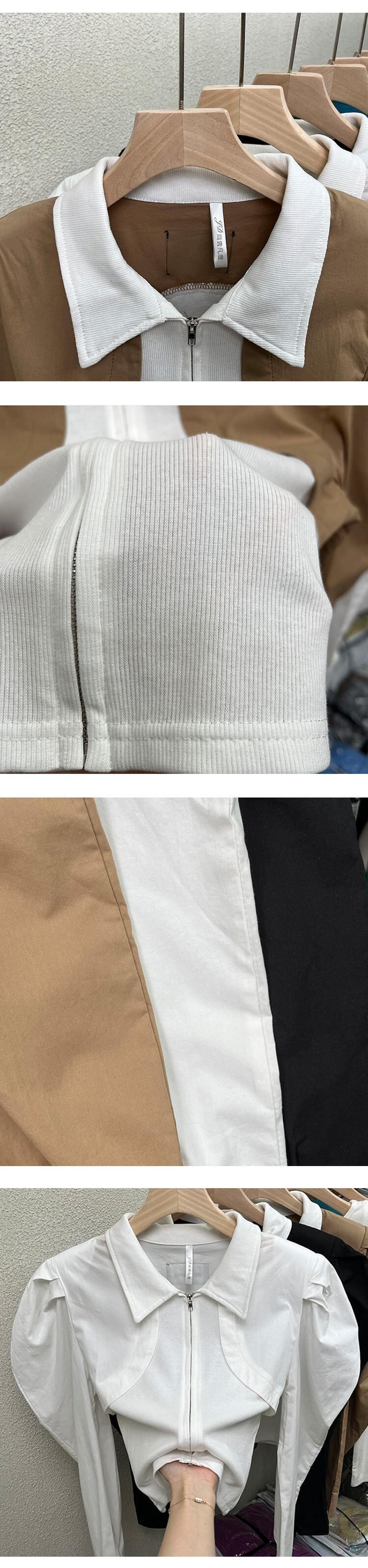 [EWQ] パッチワーク ジッパー シャツ ホワイト ブラック コントラスト カラー長袖トップ秋潮ブラウス ロング オータム 秋物