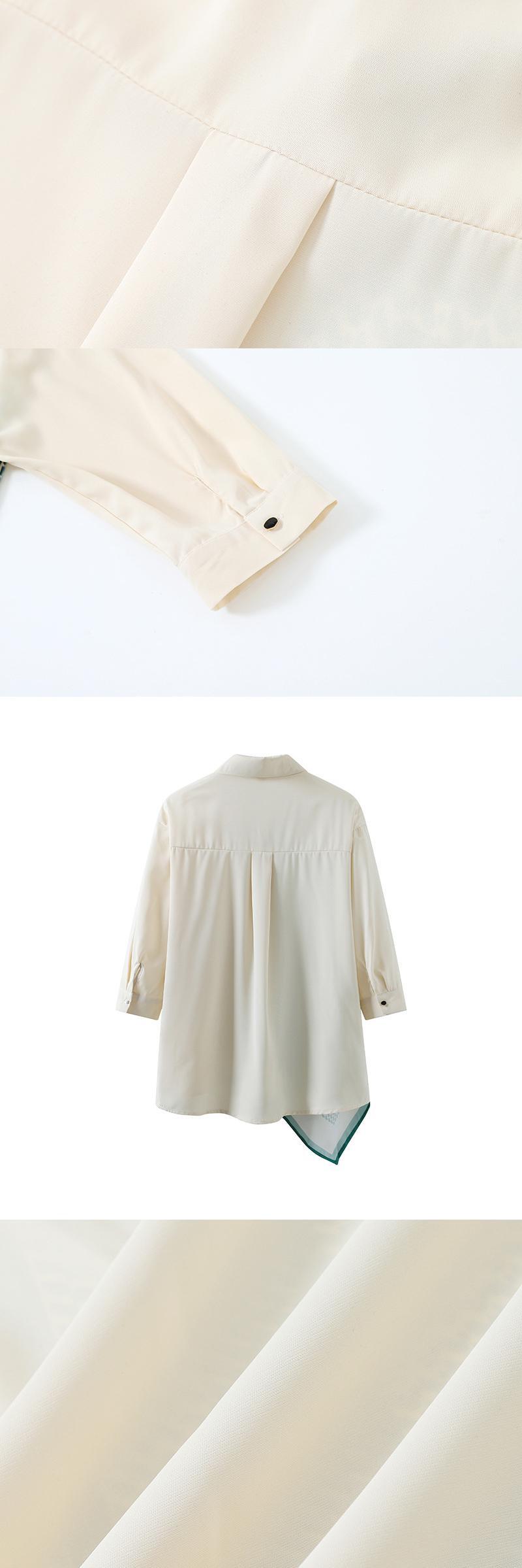 [EWQ] プリント幾何学裾不規則シャツラペル 3 クォーター ブラウス秋トレンド トップス オータム 秋物