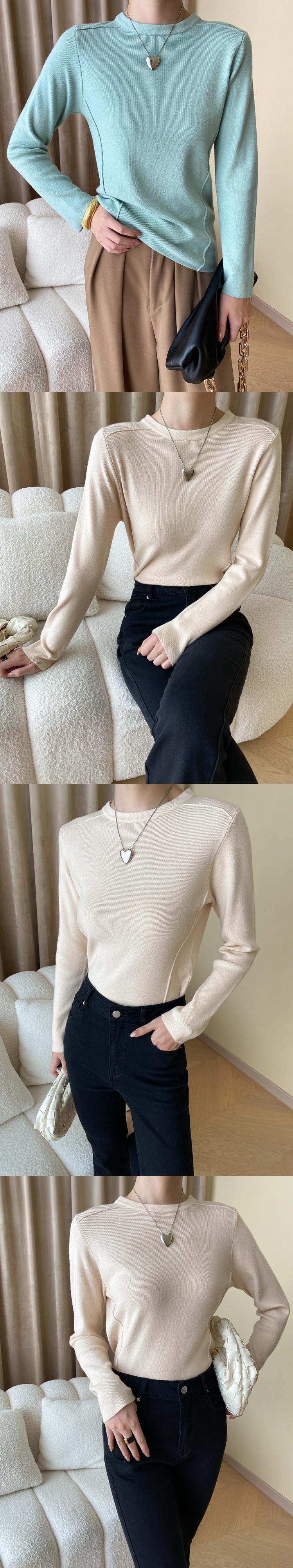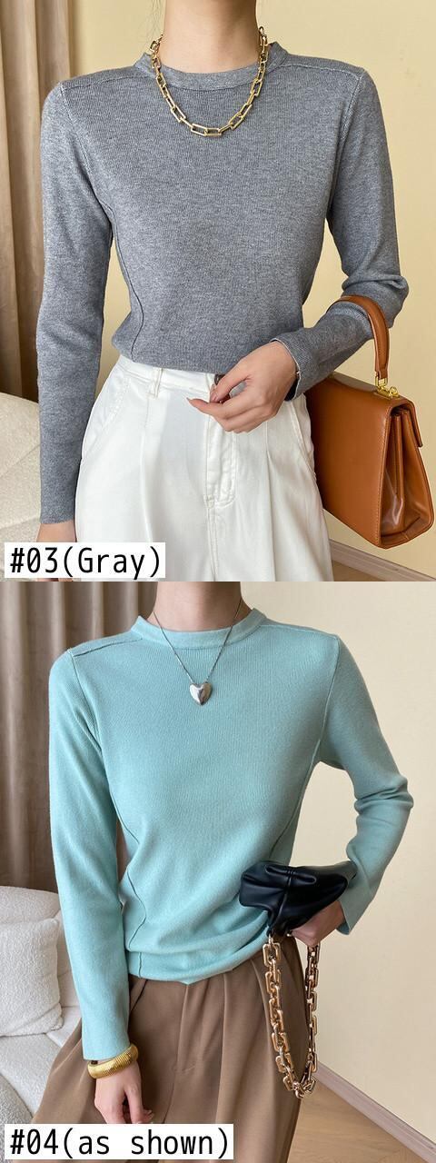 [EWQ] 長袖セーター O ネック無地スリム弾性プルオーバーニット秋薄潮ニットトップ ロング エラスティック 伸縮 オータム 秋物 Oネック ソリッドカラー