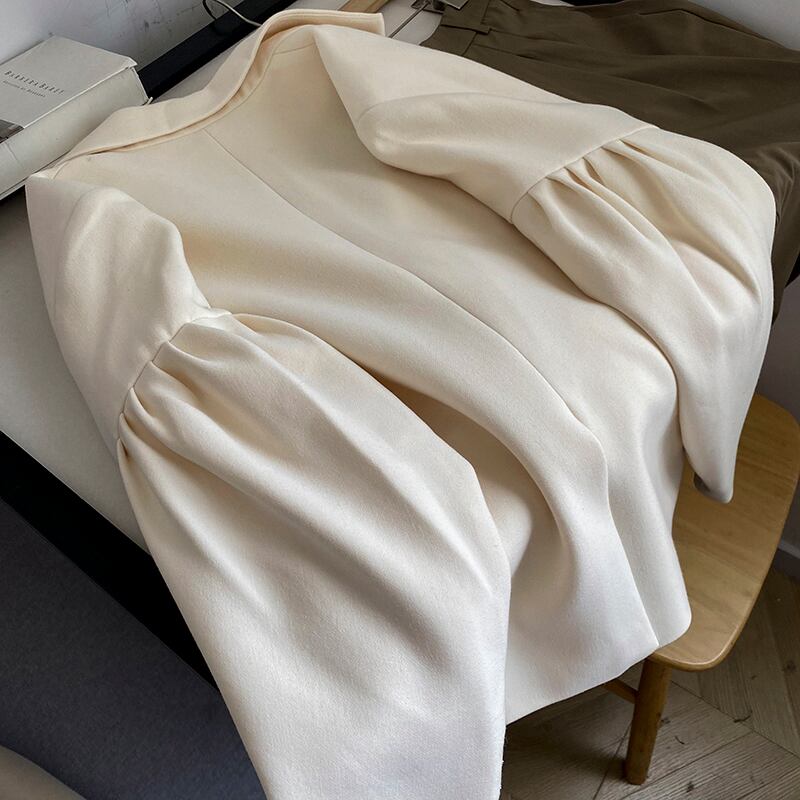 [EWQ] プリーツパッチワークスリーブブレザーコート 1 ボタンルーズアプリコットスーツジャケット秋潮ブレザー オータム 秋物