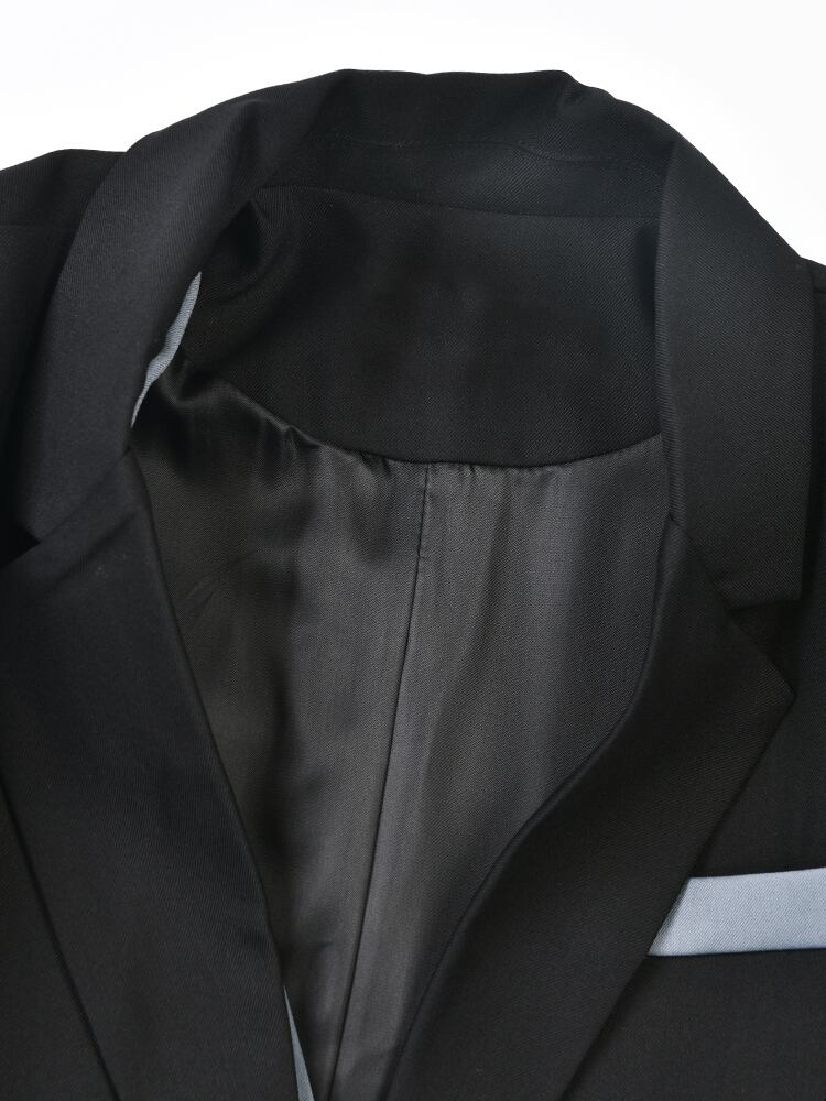 [EWQ] 気質ブレザーコート長袖不規則パッチワークコントラストポケットスーツジャケット秋潮ブレザー 690 ロング オータム 秋物