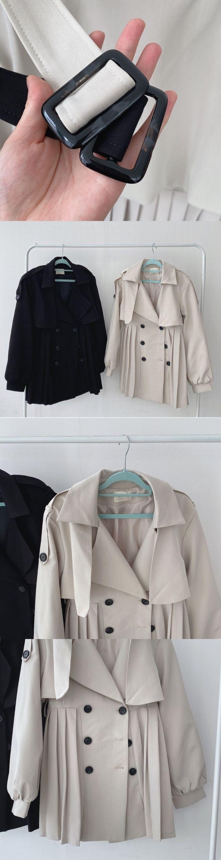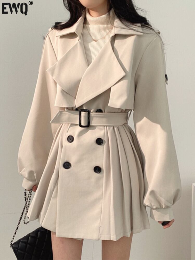 [EWQ] シックラペル ダブルブレスト レースアップ ウエスト ランタンスリーブ プリーツ ウインドブレーカー コート 秋 16E4792 オータム 秋物