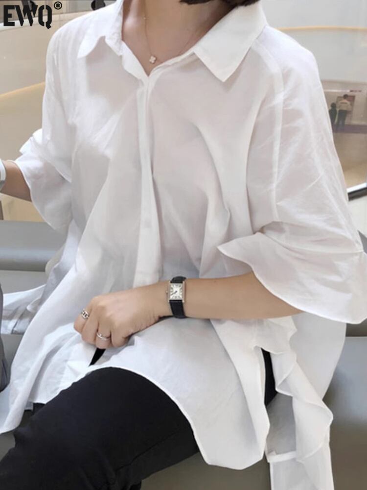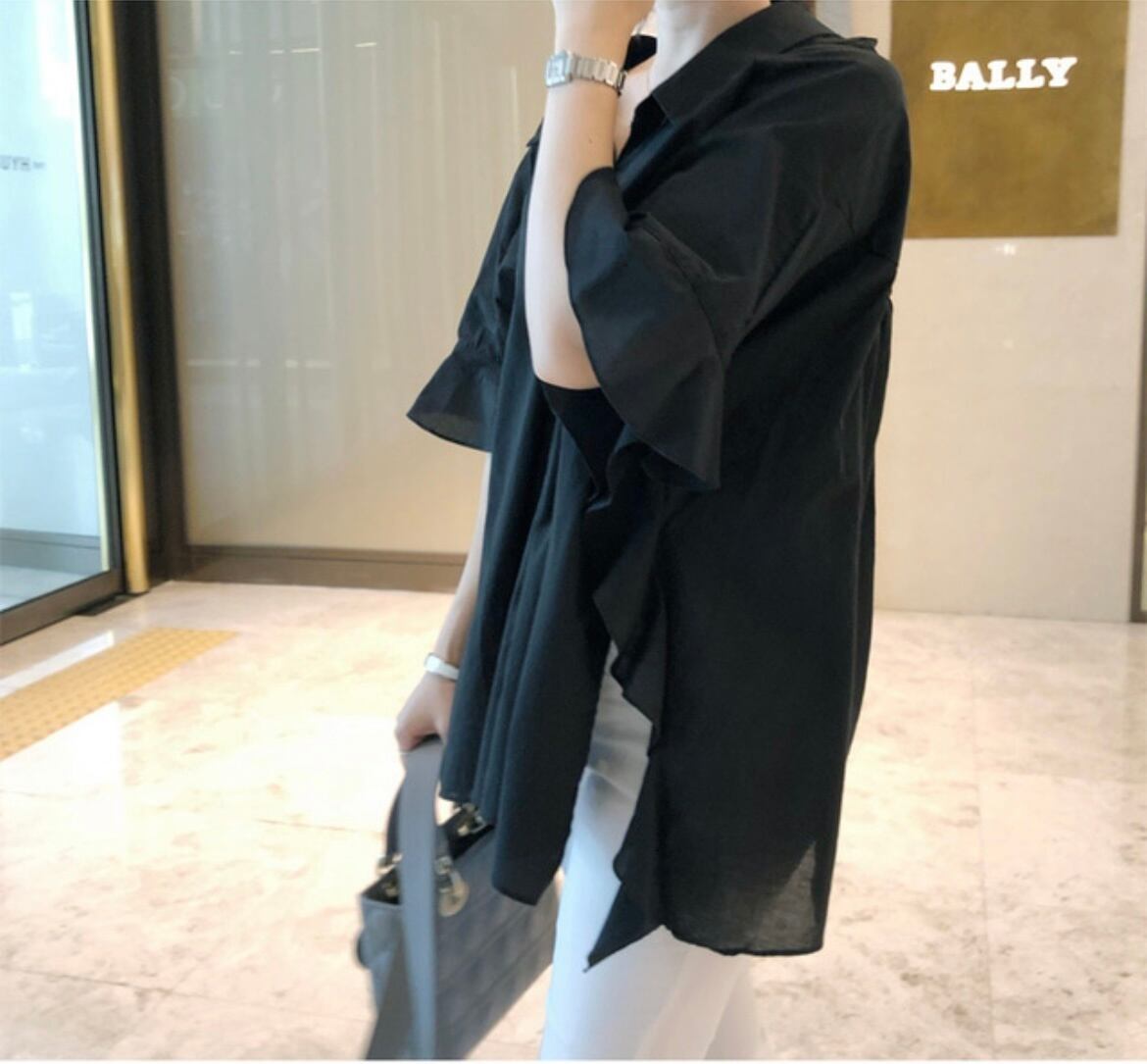 [EWQ] シック不規則食用樹菌シャツラペルシングルブレストブラウス夏 16O375 サマー 夏物