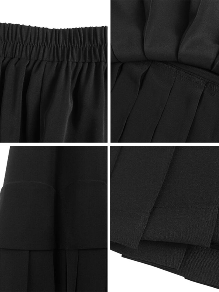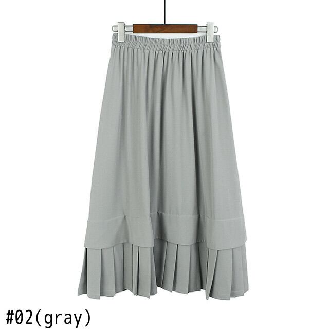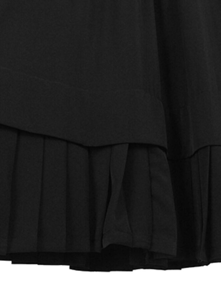 [EWQ] プリーツパッチワーク A ラインスカートウエスト弾性黒ミッドカーフスカート秋潮ファルダ 6U3408 ブラック エラスティック 伸縮 オータム 秋物 Aライン