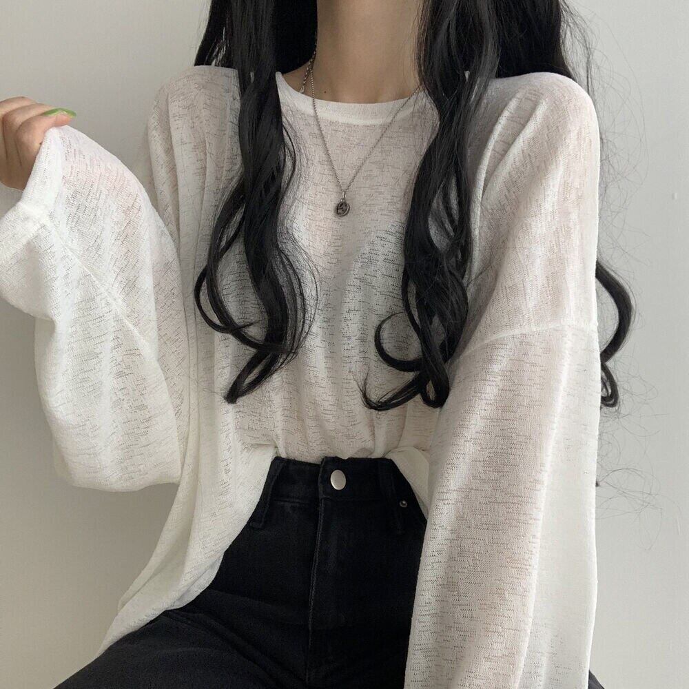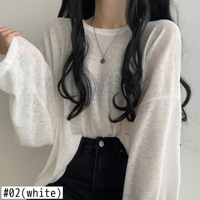 [EWQ] シック遠近感 O ネック ルーズ Tシャツ レディース 長袖 薄手 Tシャツ 秋 トップス 16O379 ロング オータム 秋物 Oネック