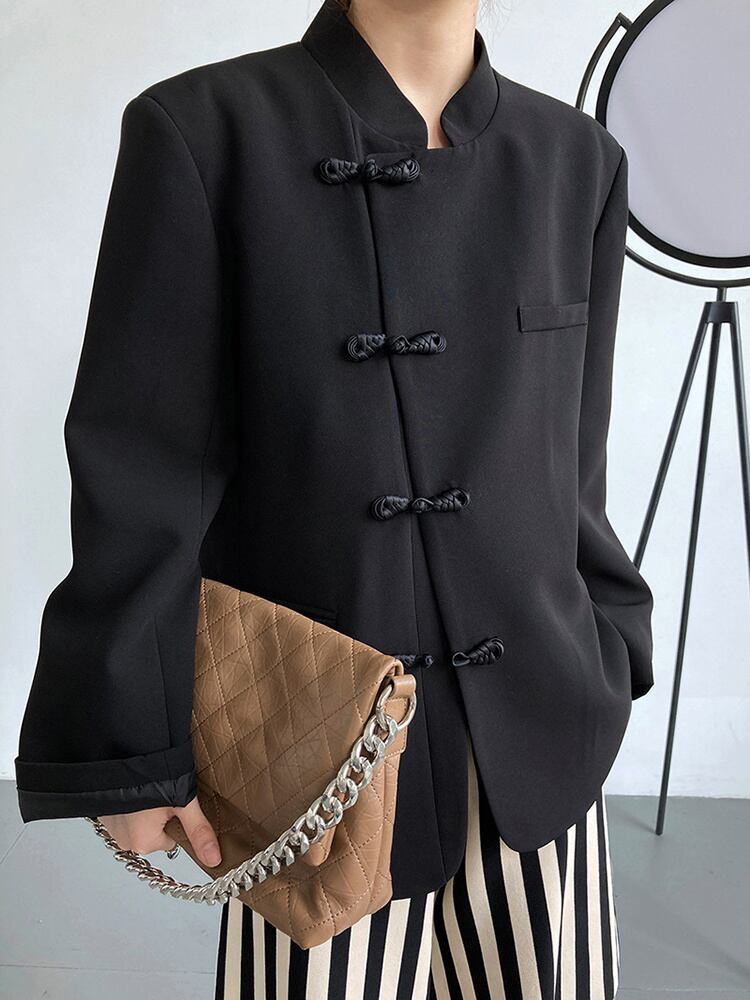 [EWQ] 非対称バックルブレザーコート長袖ルーズスーツジャケット秋冬潮ブレザー U3631 ロング オータム 秋物 ウィンター 冬物