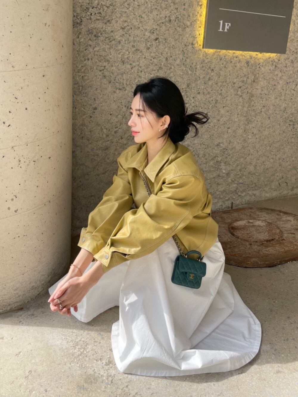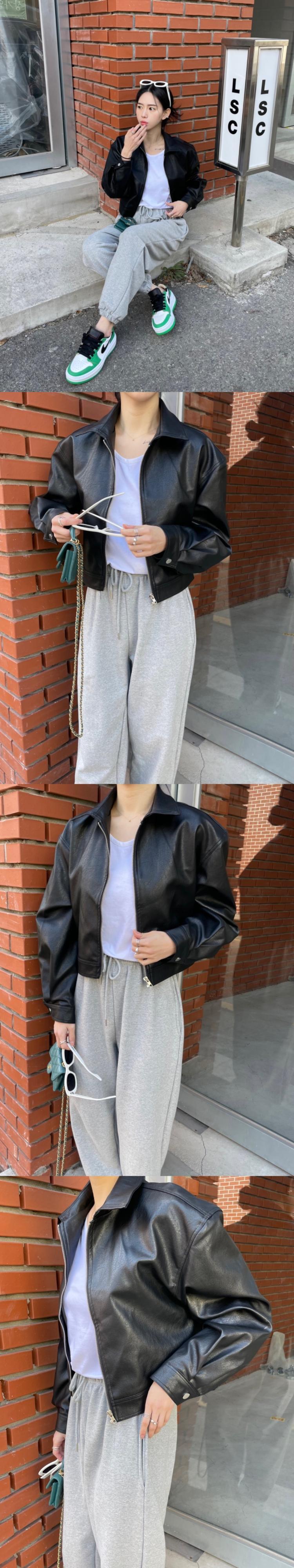 [EWQ] ショート PU レザージャケット長袖ジップアップジャケットコート秋潮ルーズ黒生き抜く 6U3308 ロング ブラック オータム 秋物