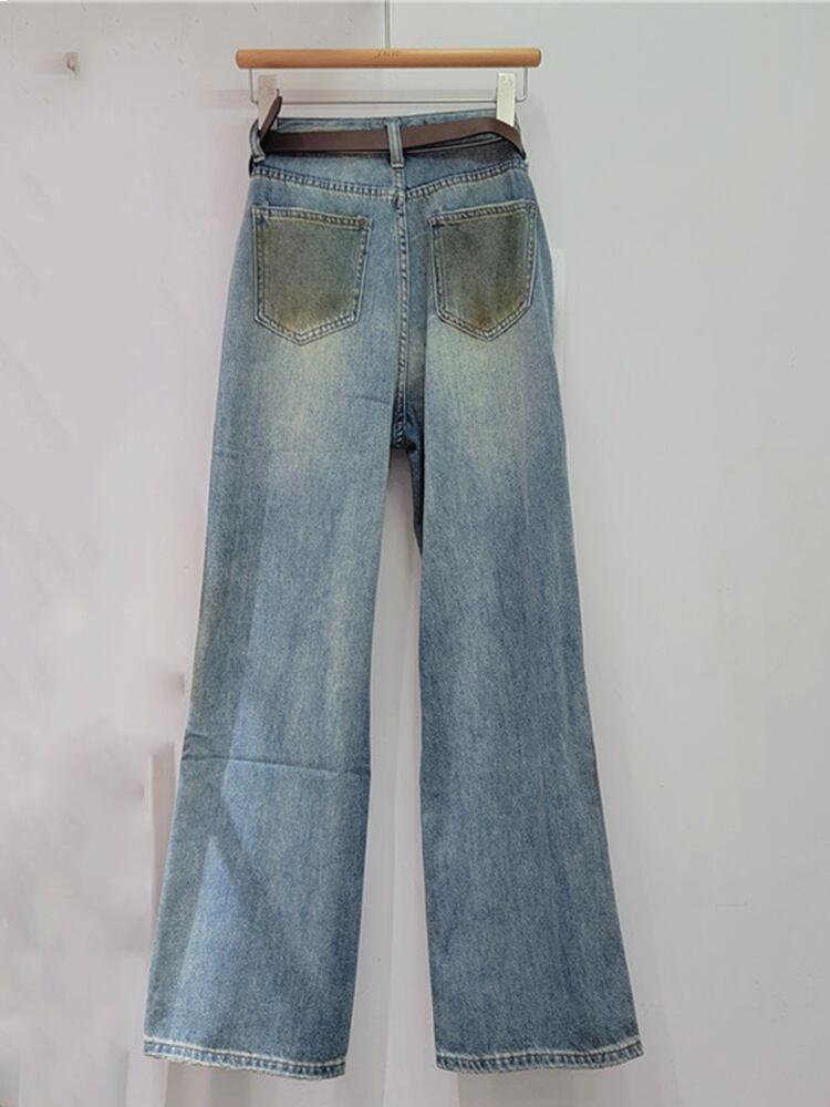 [EWQ] カラードローイングホールジーンズストリートウエストポケットストレートデニムパンツ秋潮服 レッド オータム 秋物